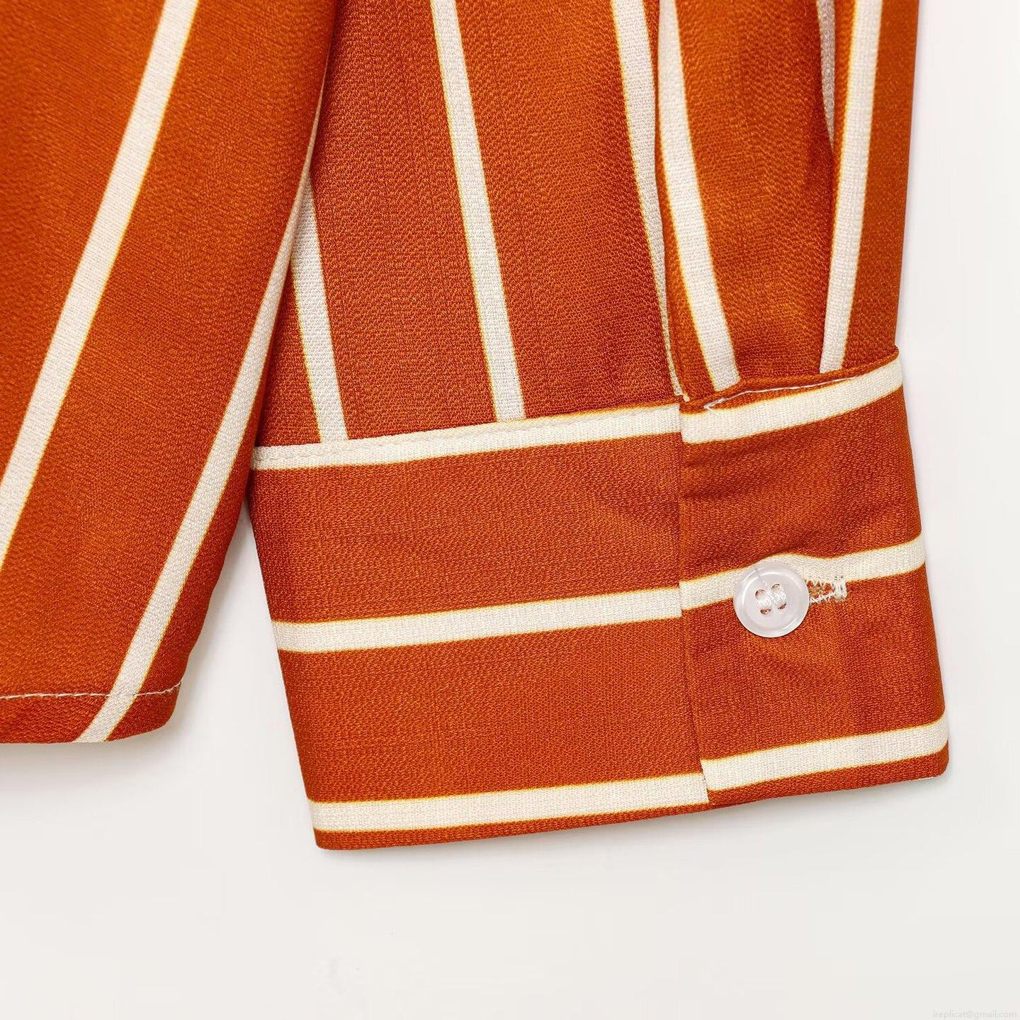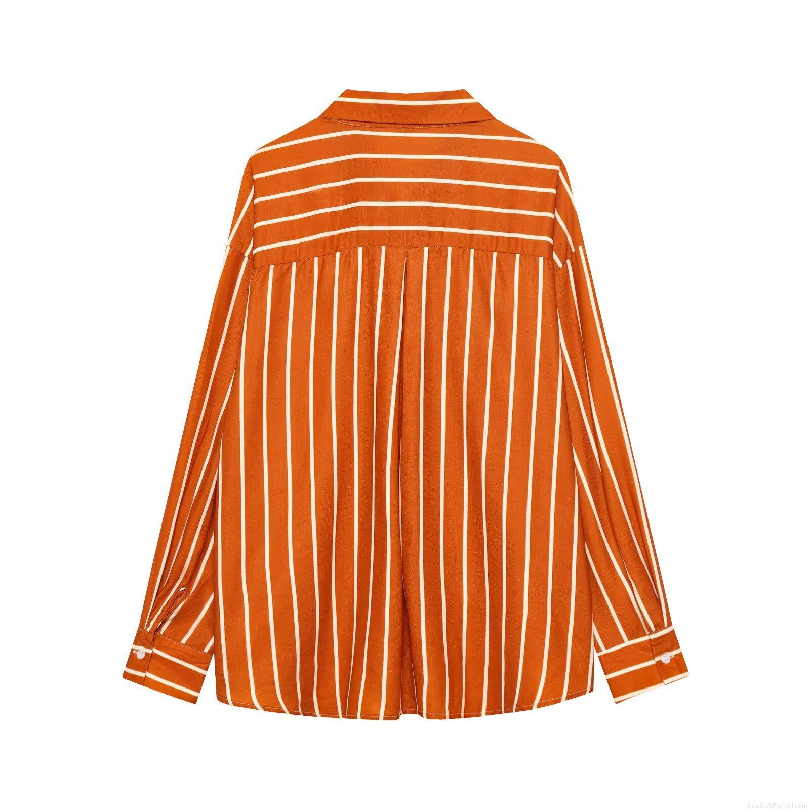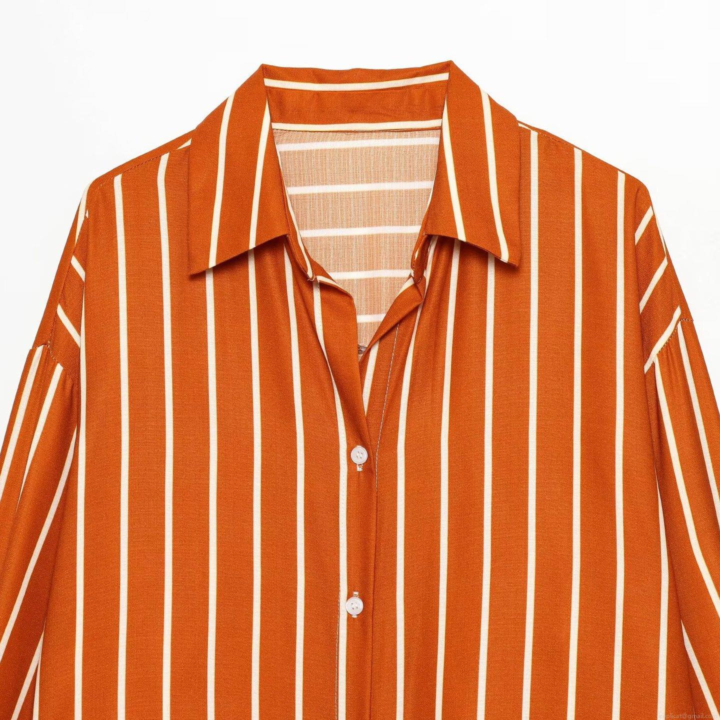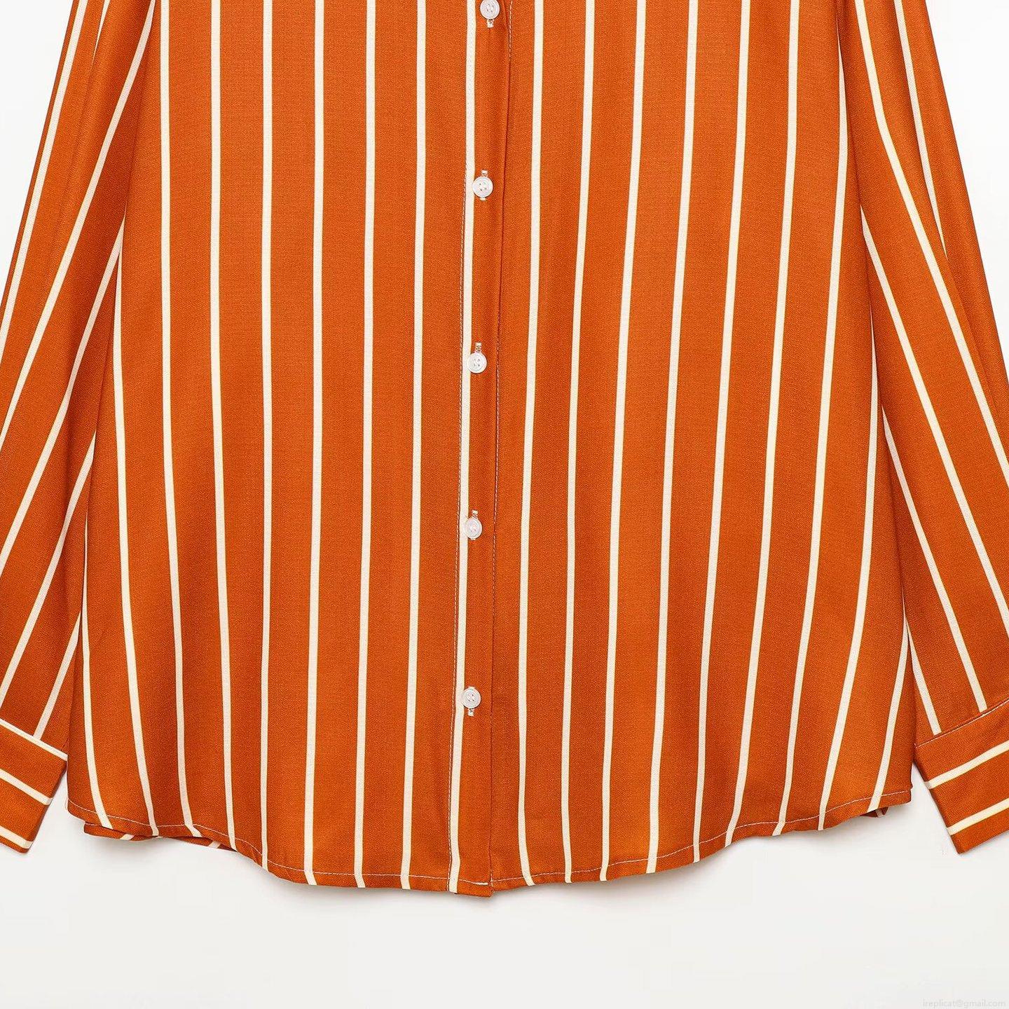 • Women Striped Long Sleeve Shirt Oversized Casual Button Down Blouse Lapel Collar Polyester Spandex Commuter Top Daily Wear Office Ladies Winter