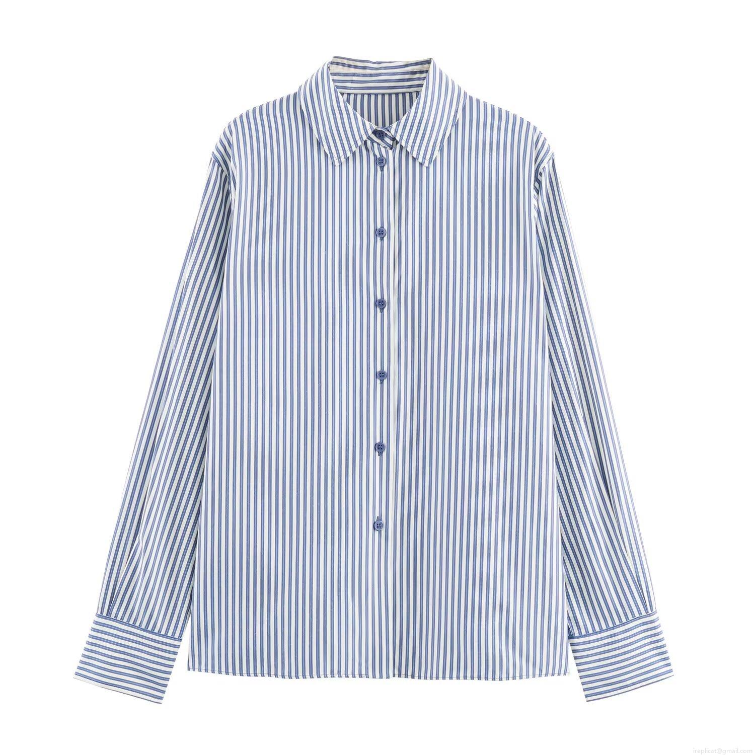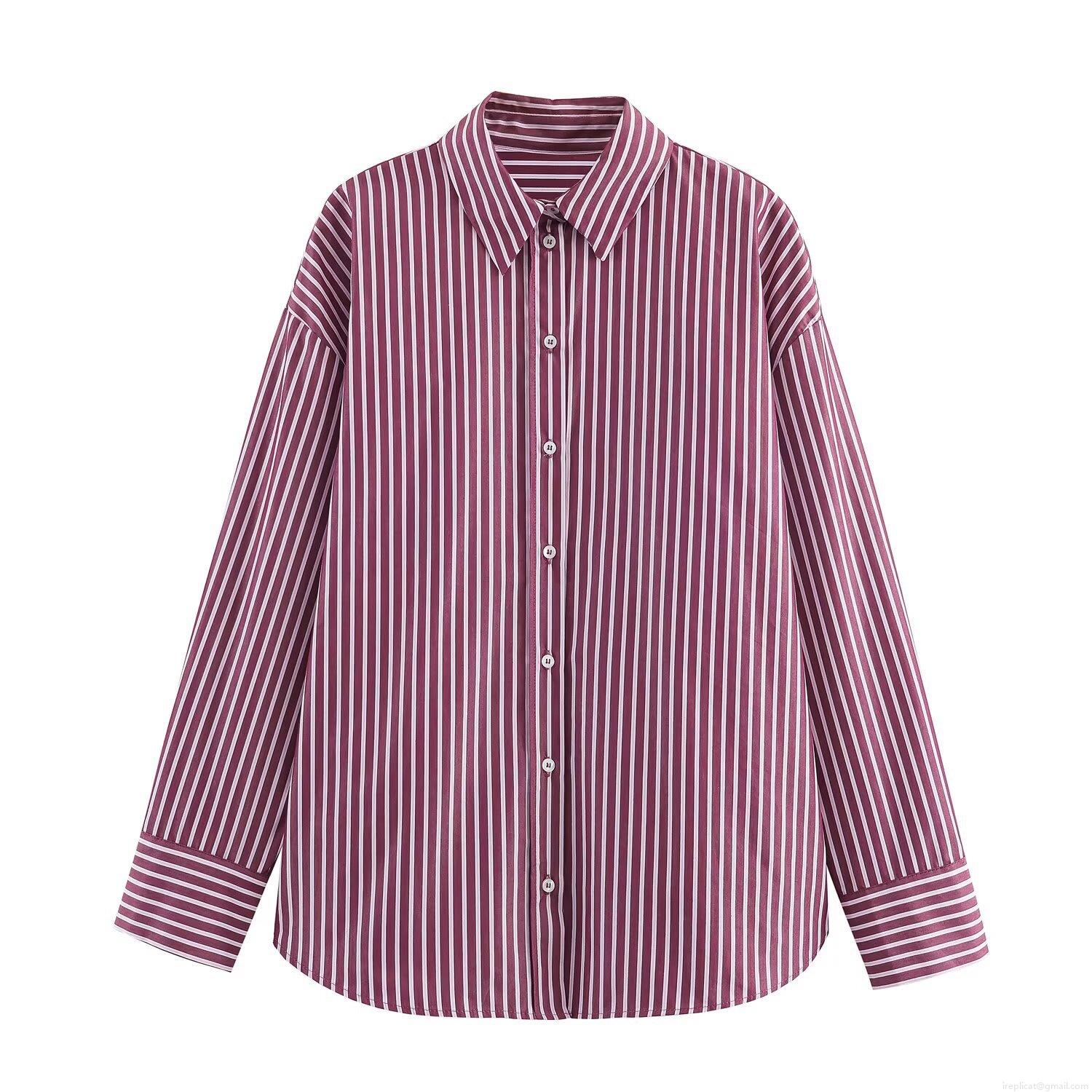 • Women Striped Long Sleeve Shirt Polyester Poplin Button Down Casual Office Streetwear Blouse With Turn-down Collar For Ladies