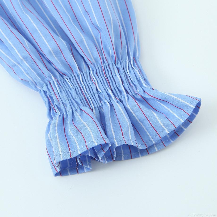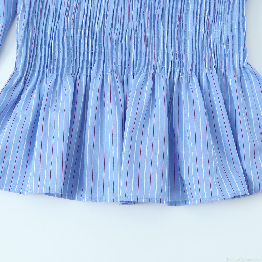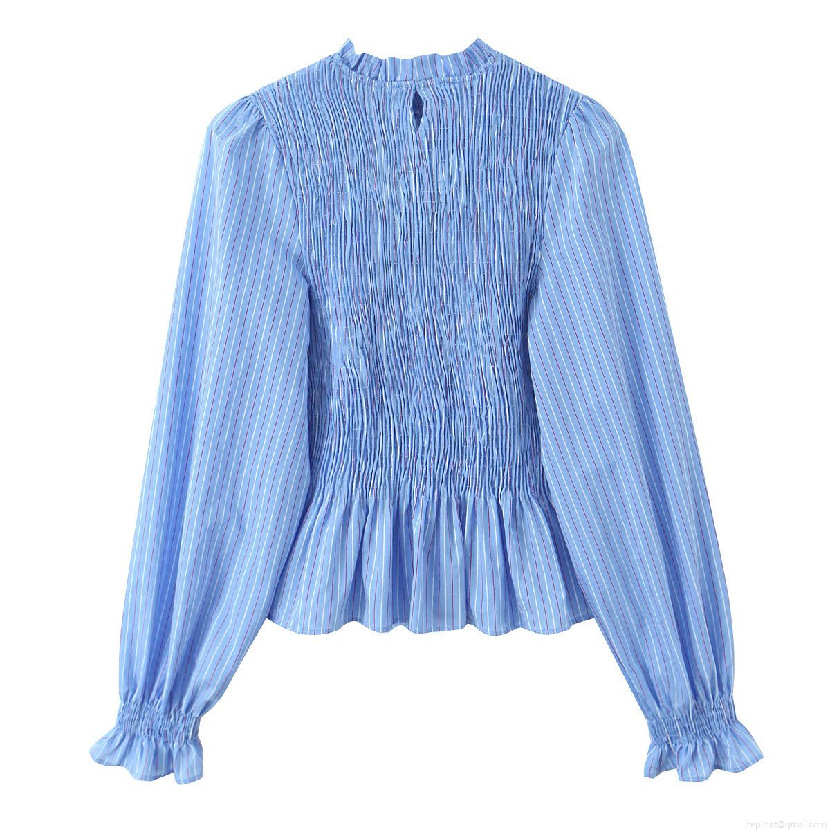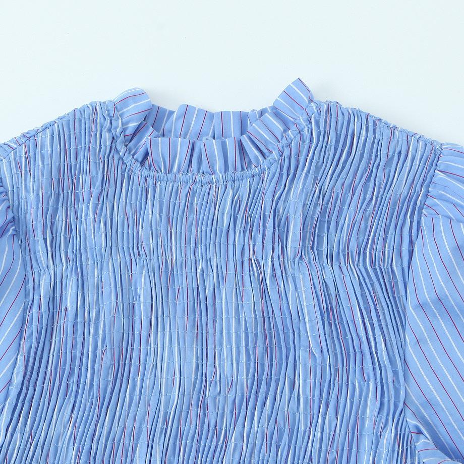• Women Sweet Smocked Blouse Polyester Striped Ruffle Collar Lantern Sleeve Shirt Retro Elegant Pullover Top For Daily Dating Ladies Fashion