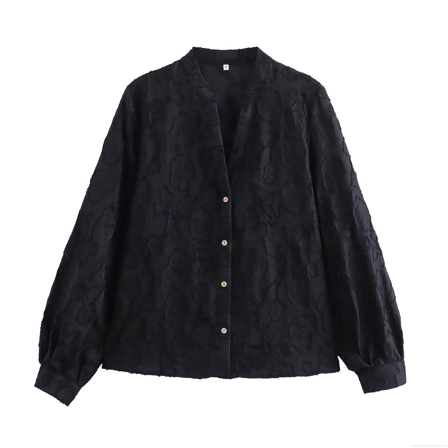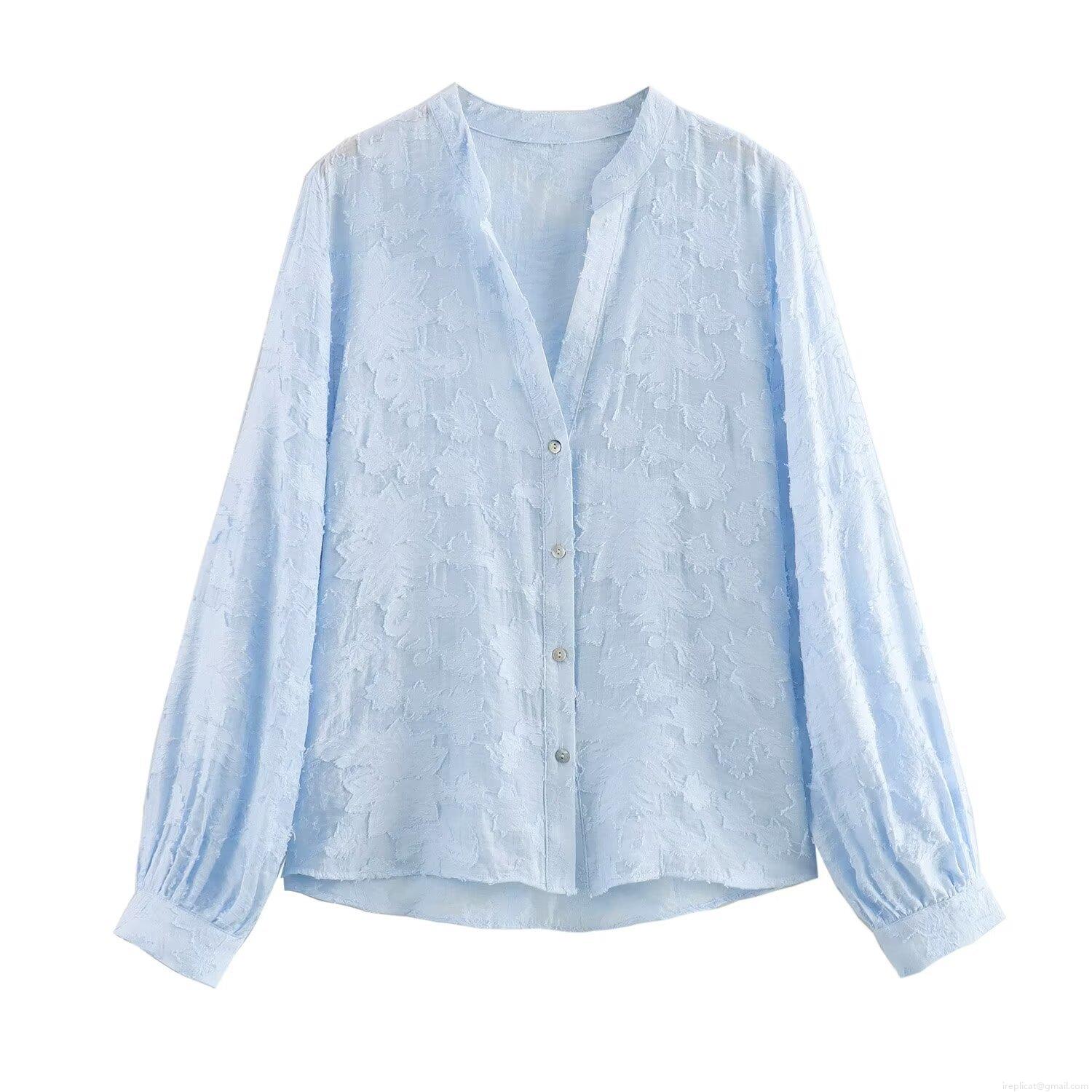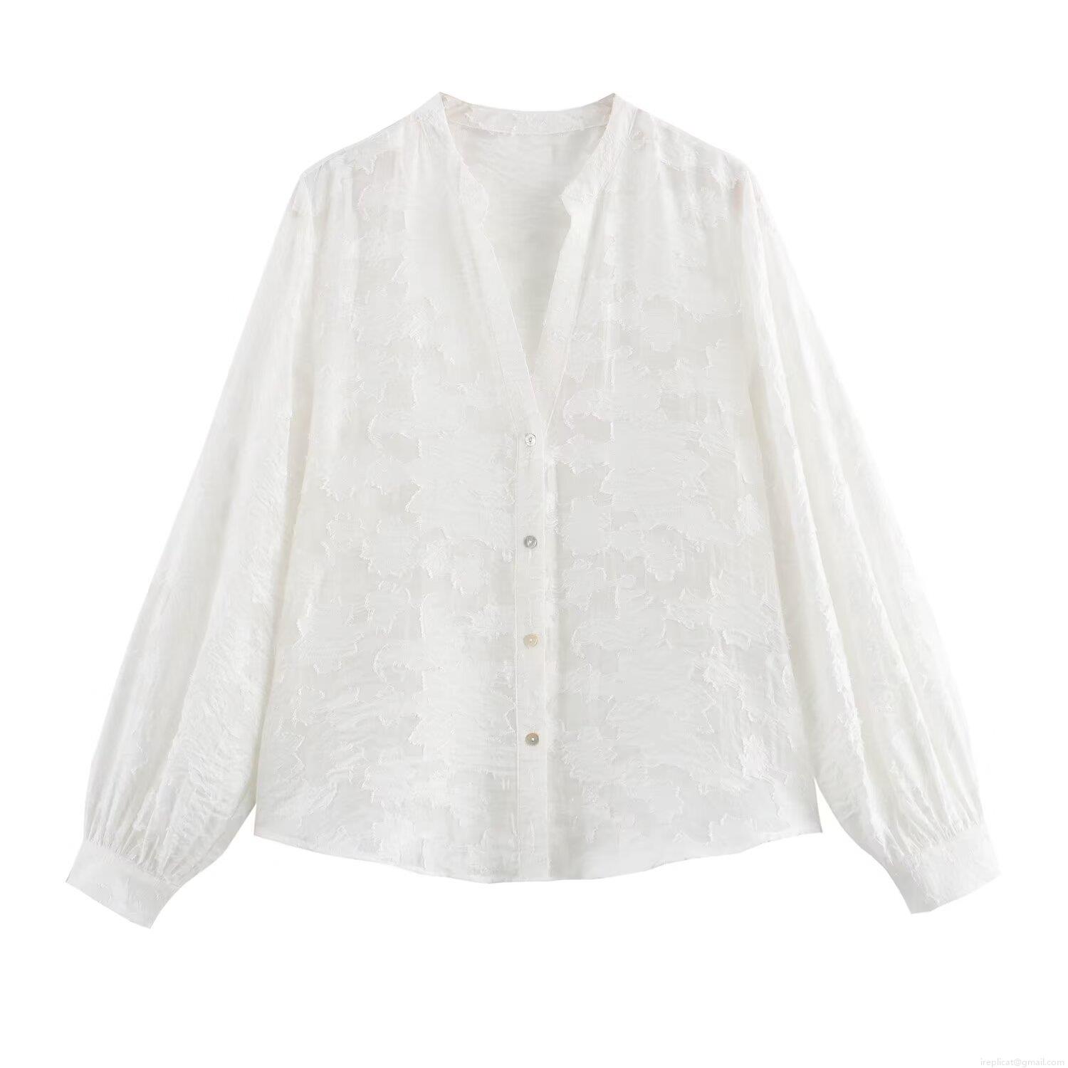 • Women V Neck Long Sleeve Floral Burnout Blouse Elegant Button Down Shirt Streetwear Casual Top For Women Autumn Fashion
