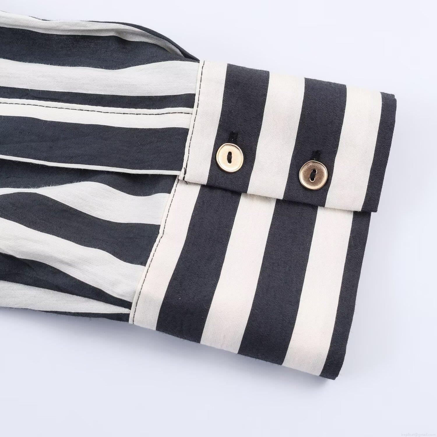 • Women Vertical Striped Long Sleeve Button Down Blouse Side Drawstring Lapel Shirt Casual Loose Commuter Tops Office Wear Fashion Outfits