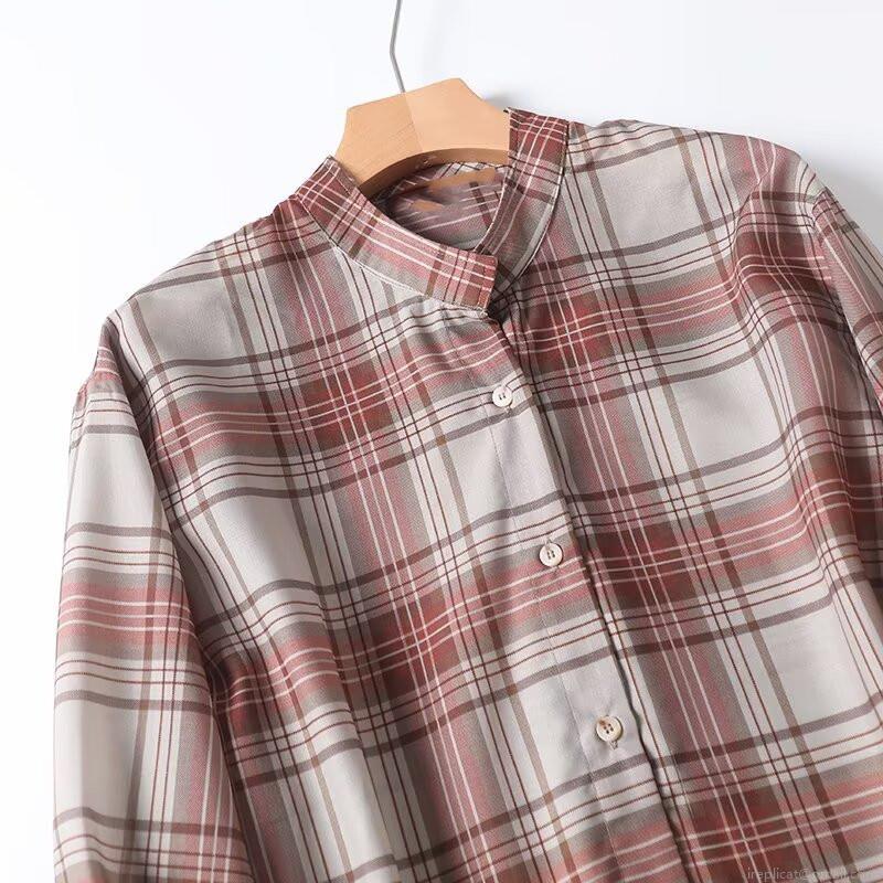• Women Vintage Plaid Long Sleeve Blouse 100% Polyester Stand Collar Button Down Shirt Casual Loose Fit Top For Daily Wear Fashion Retro Checkered Tunic