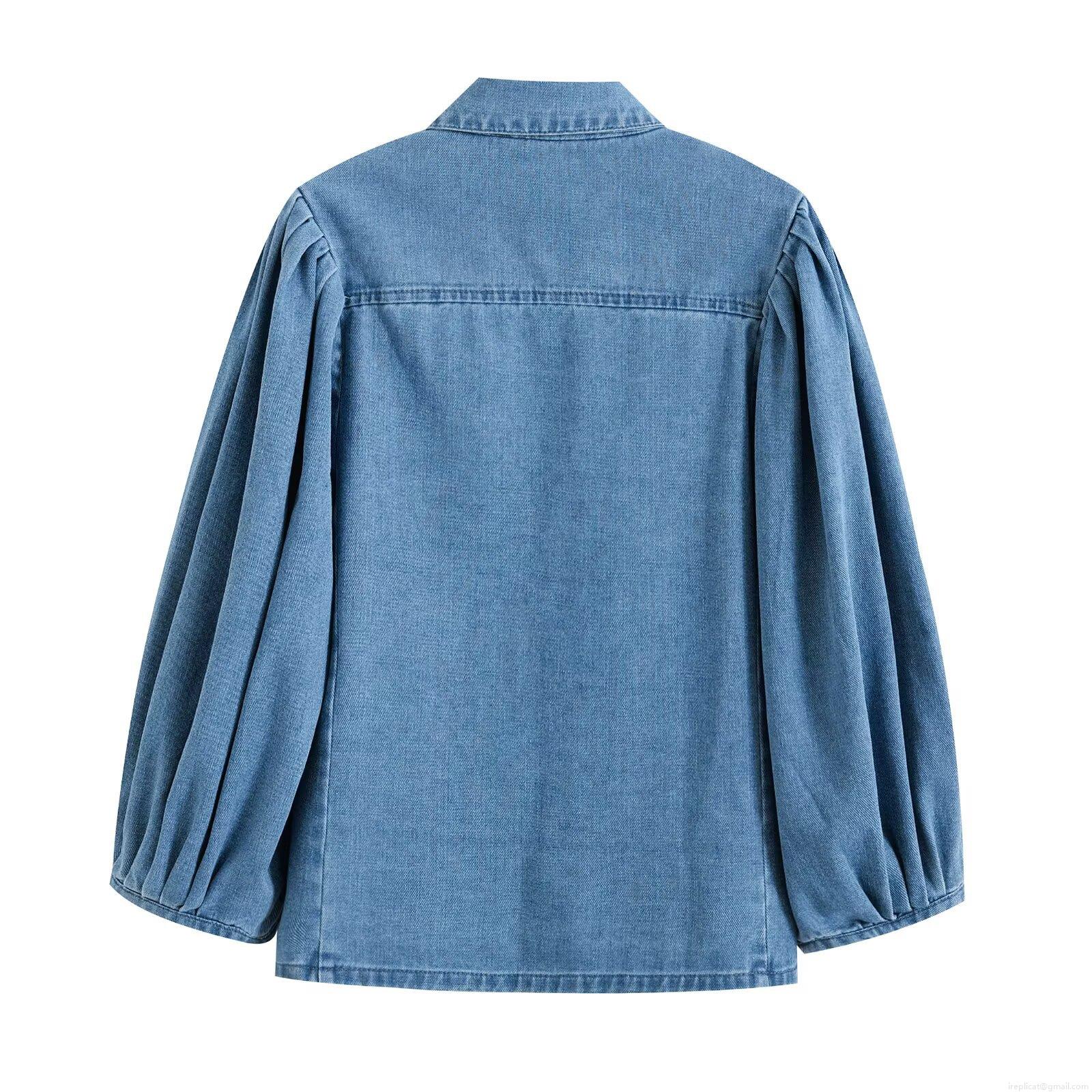 Women Western Style Loose Denim Shirt Long Sleeve Lapel Casual Solid Color Cotton Blend Button Down Blouse Streetwear Autumn Tops