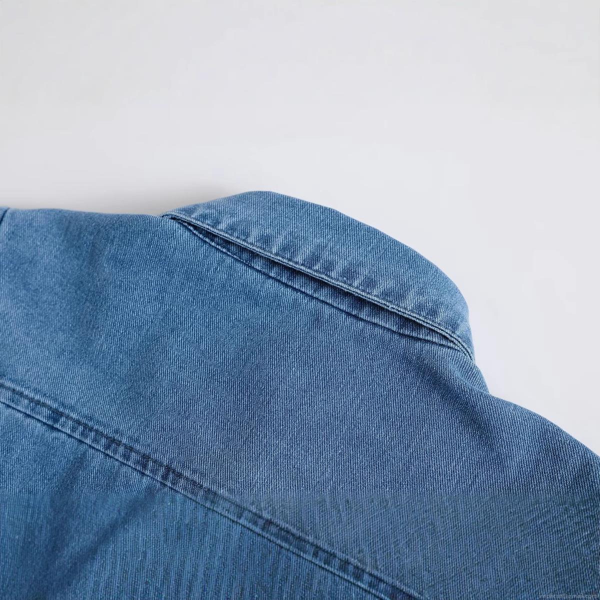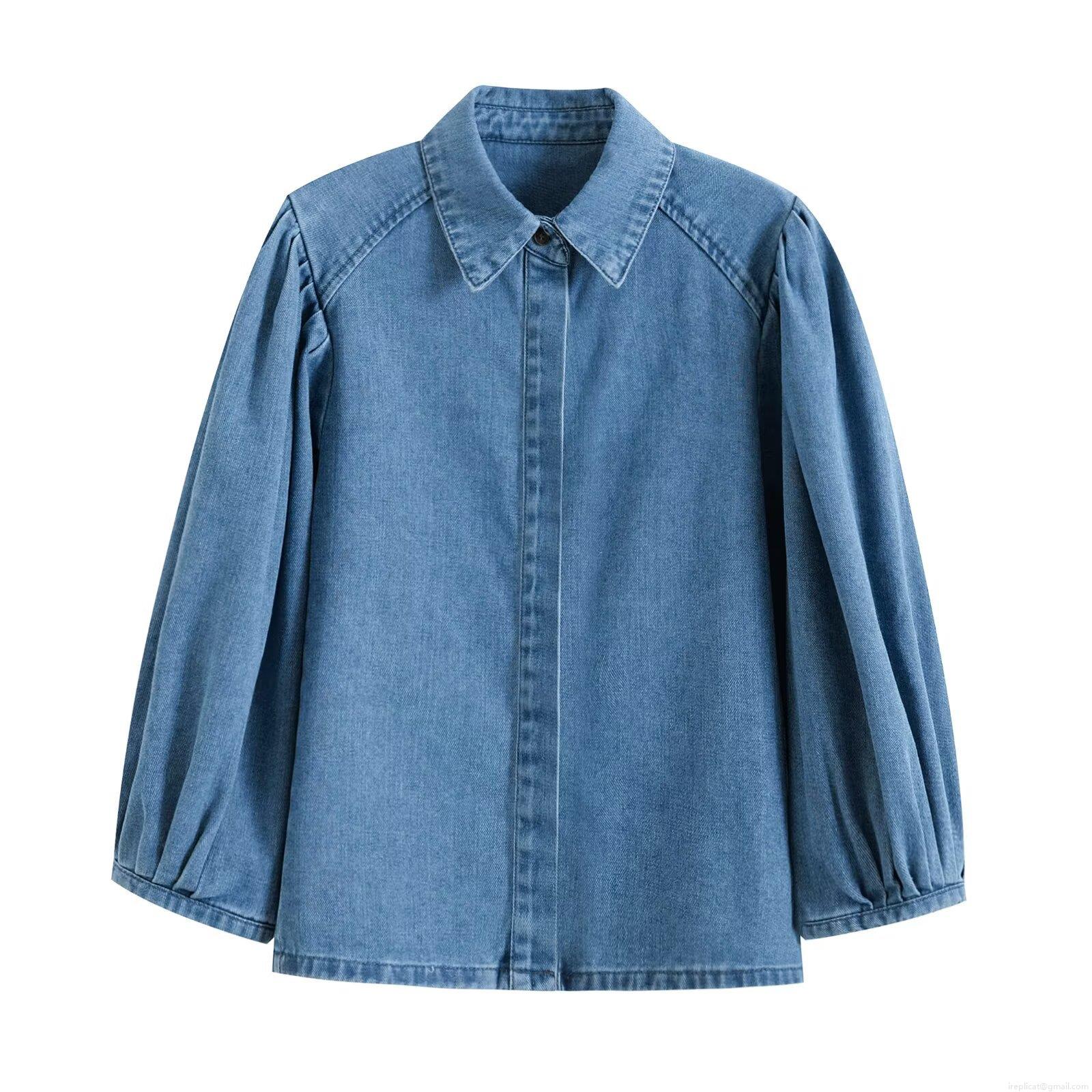 • Women Western Style Loose Denim Shirt Long Sleeve Lapel Casual Solid Color Cotton Blend Button Down Blouse Streetwear Autumn Tops