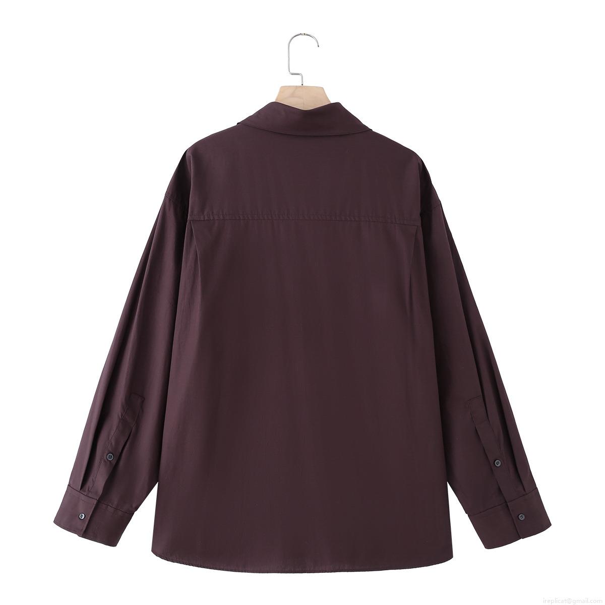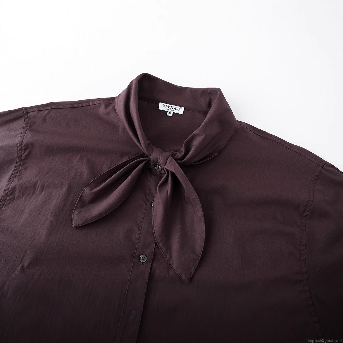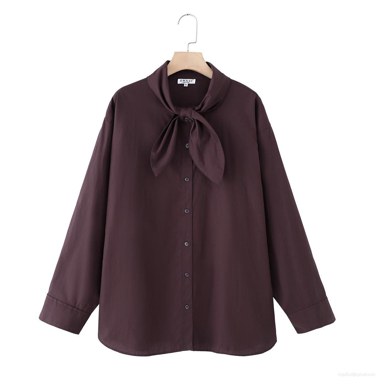 • Women's 100% Cotton Poplin Blouse Elegant Solid Color Bow Tie Neck Long Sleeve Button Down Loose Shirt For Office Daily Work Wear Soft Casual Top