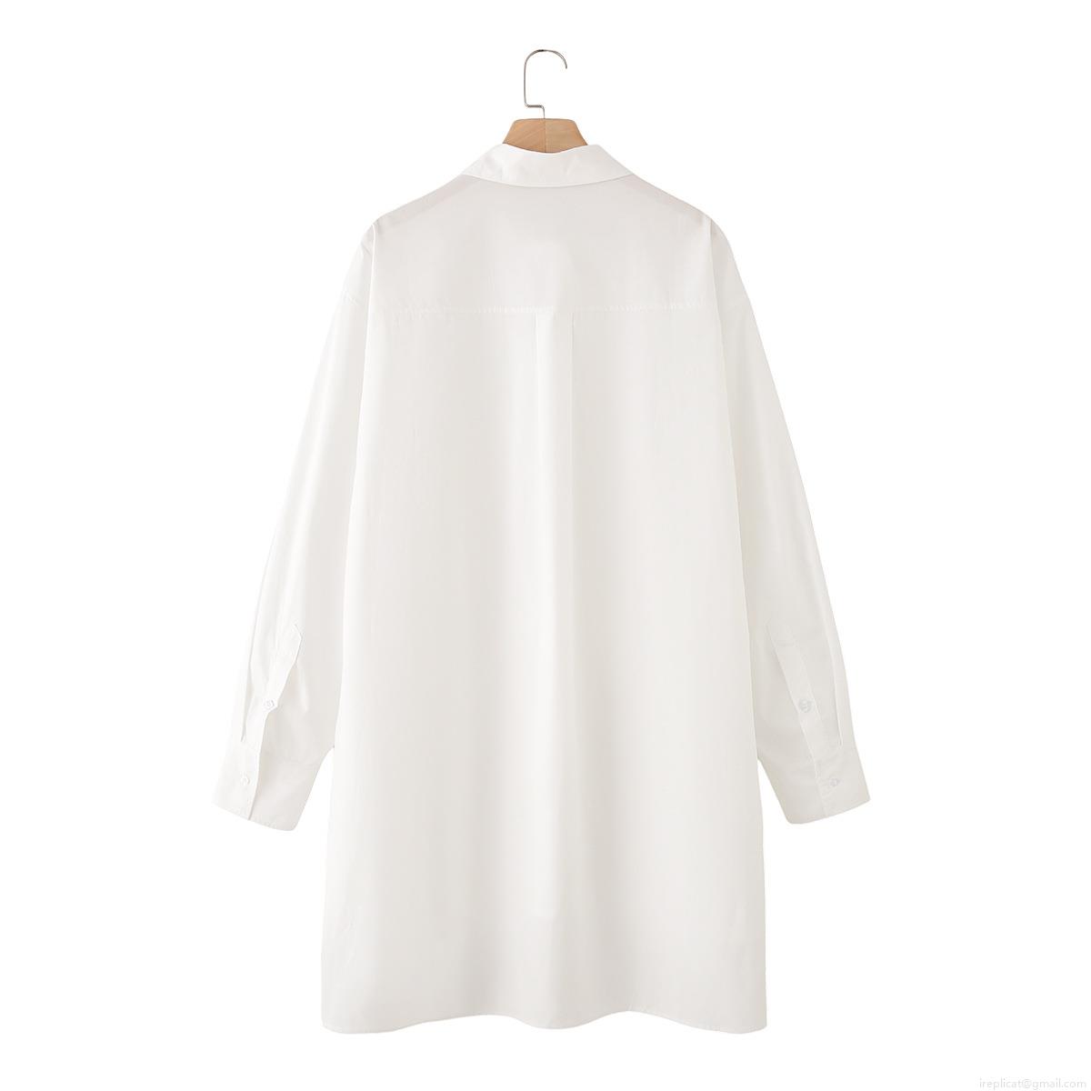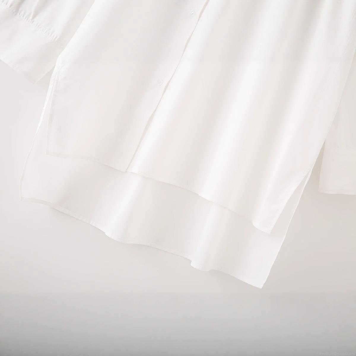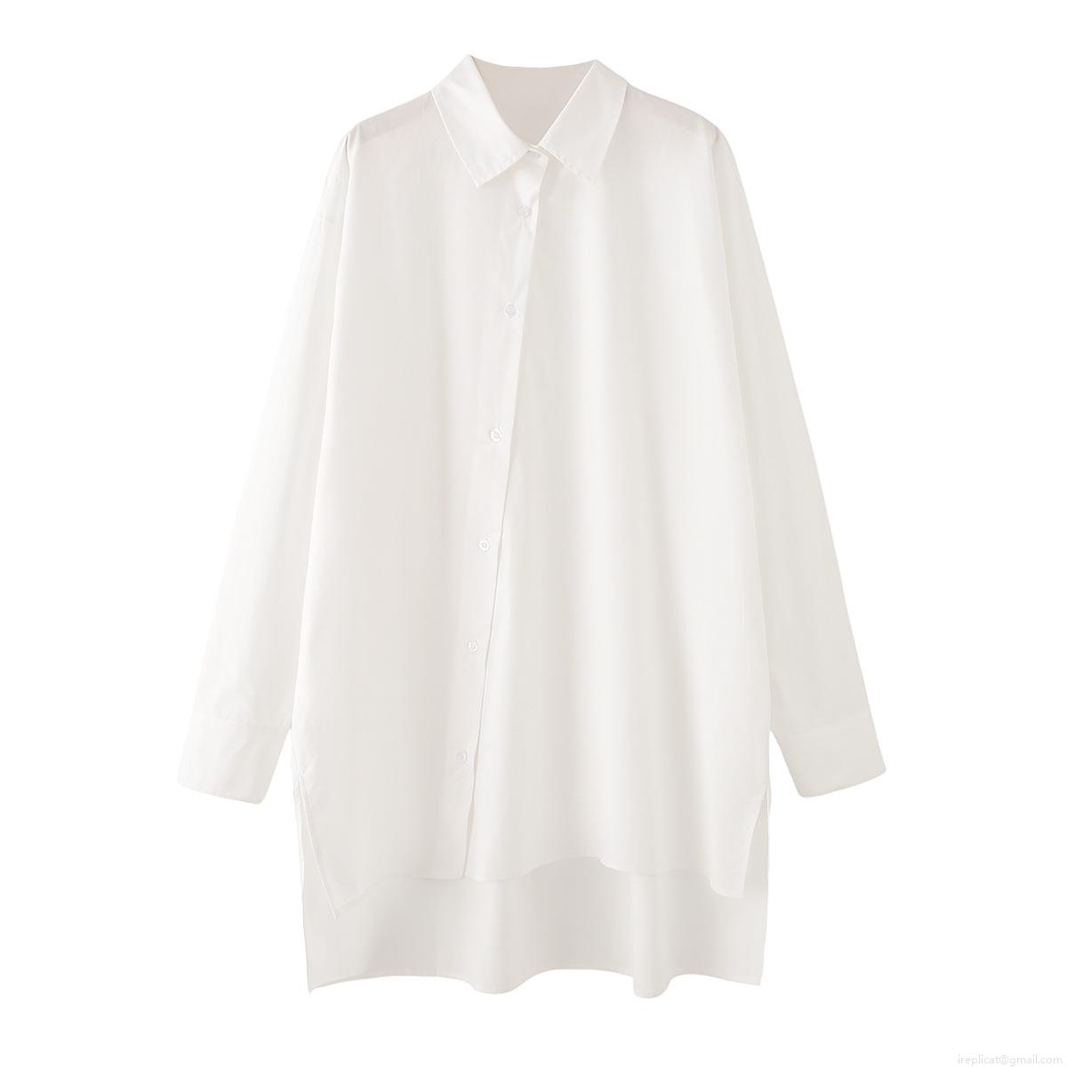 • Women's 100% Cotton Poplin Long Sleeve Shirt Oversized Irregular Hem Side Split Button Down Blouse Top For Casual Daily Fashion