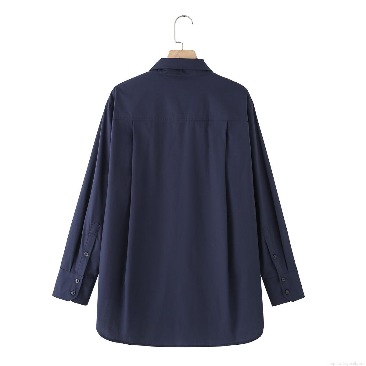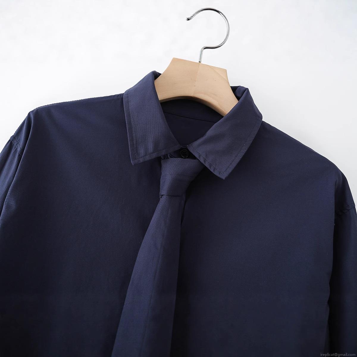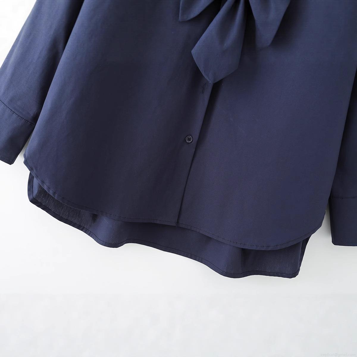 • Women's 100% Cotton Poplin Long Sleeve Shirt With Tie Solid Color Single Breasted Blouse For Office School Wear Elegant Formal Top