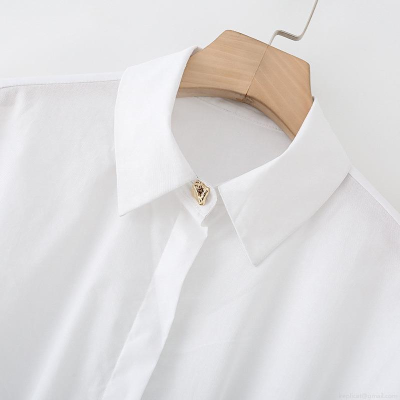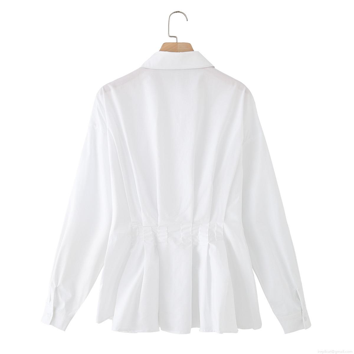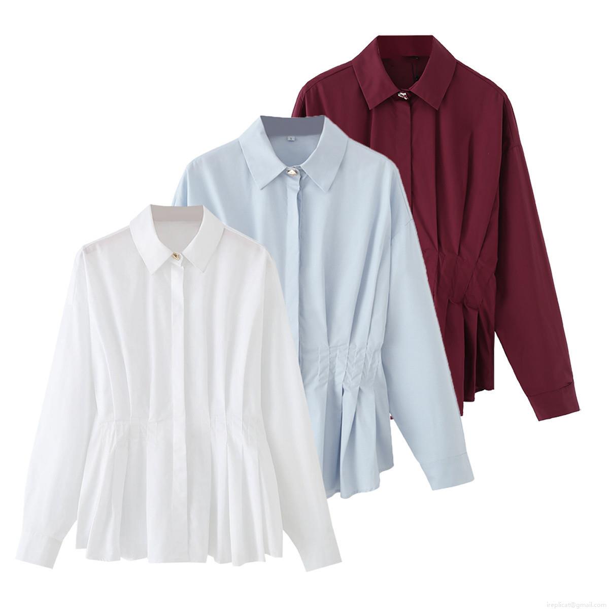 • Women's 100% Cotton Poplin Pleated Waist Blouse Elegant Lapel Collar Long Sleeve Slim Fit Casual Shirt Office Lady Solid Color Top