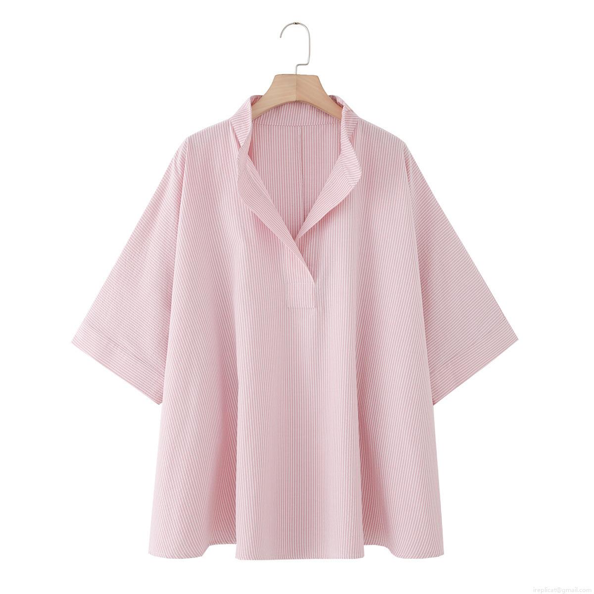 • Women's 100% Cotton Striped Blouse Fashion Loose V-Neck Poncho Style Short Sleeve Shirt Casual Summer Tops For Women
