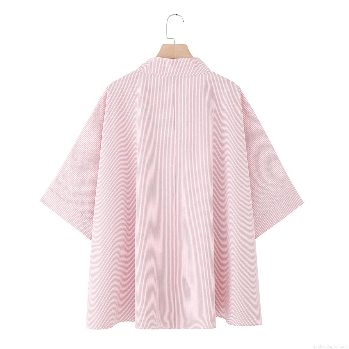 Vertical Stripes, V-neck, Cape Design, Loose Silhouette