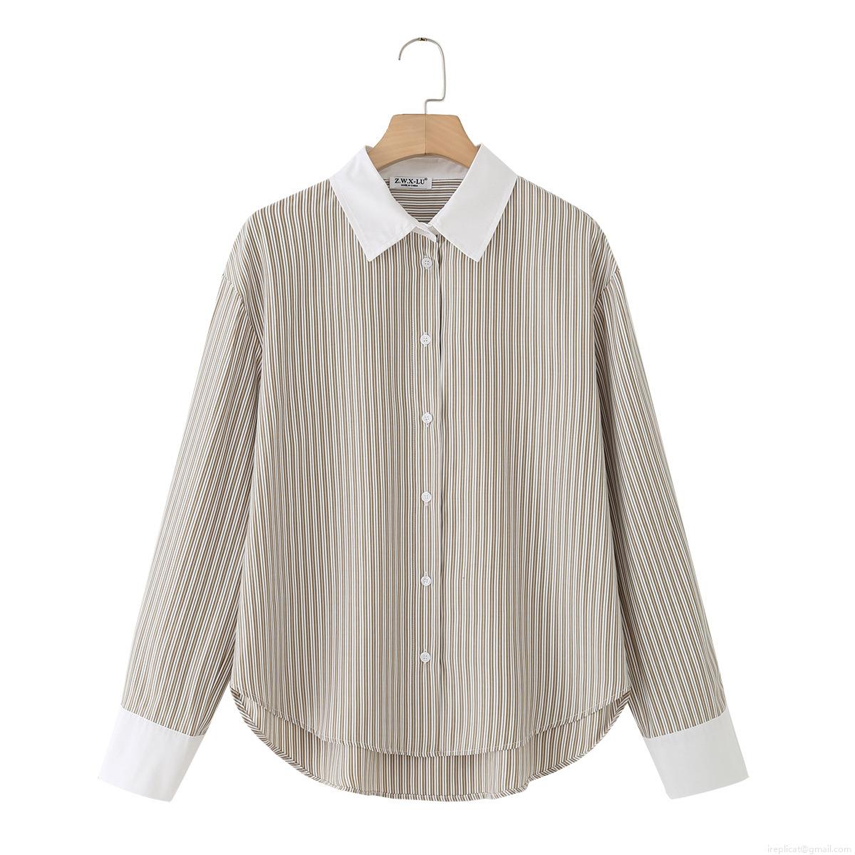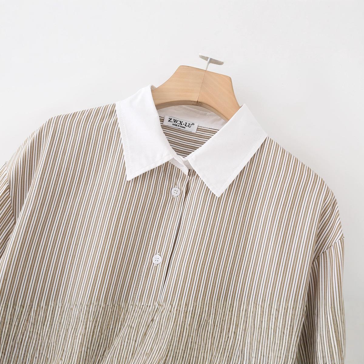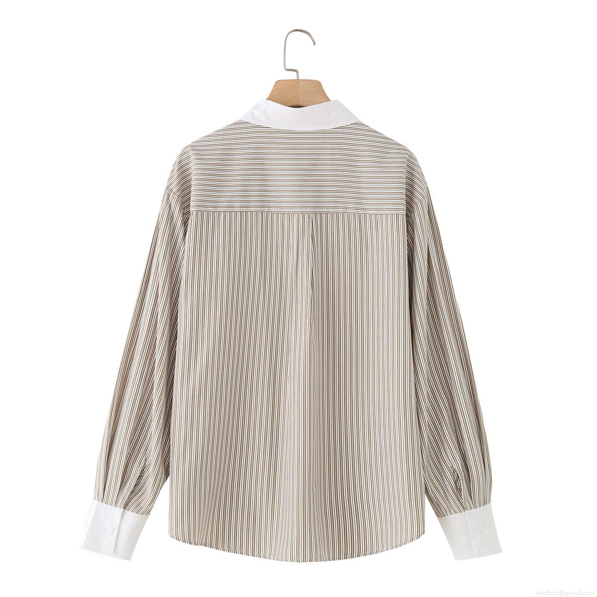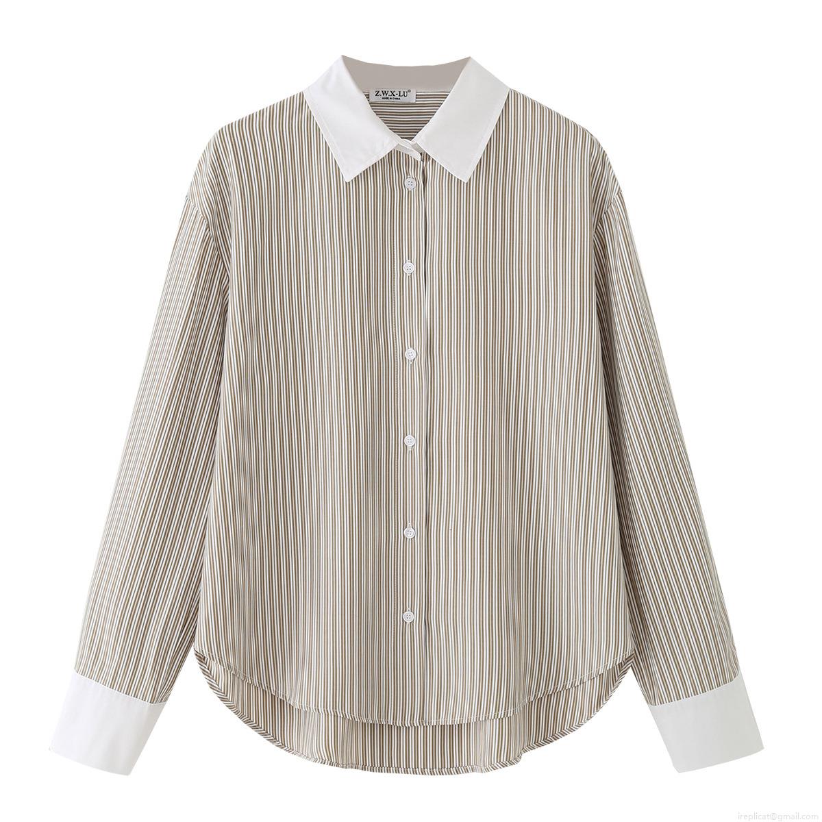 • Women's 100% Cotton Striped Long Sleeve Shirt Casual Color Block Lapel Loose Button Down Blouse For Office Daily Wear Fashion Top