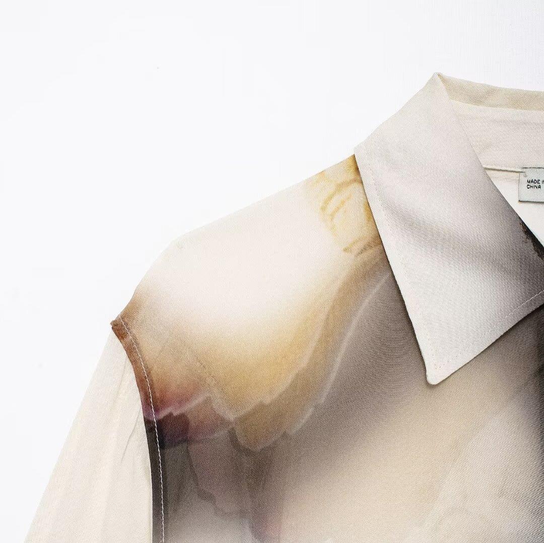 • Women's Abstract Tie Dye Print Satin Blouse Elegant Long Sleeve Shirt Lapel Loose Button Down Top Office Commuter Fashion Streetwear Casual Blouse