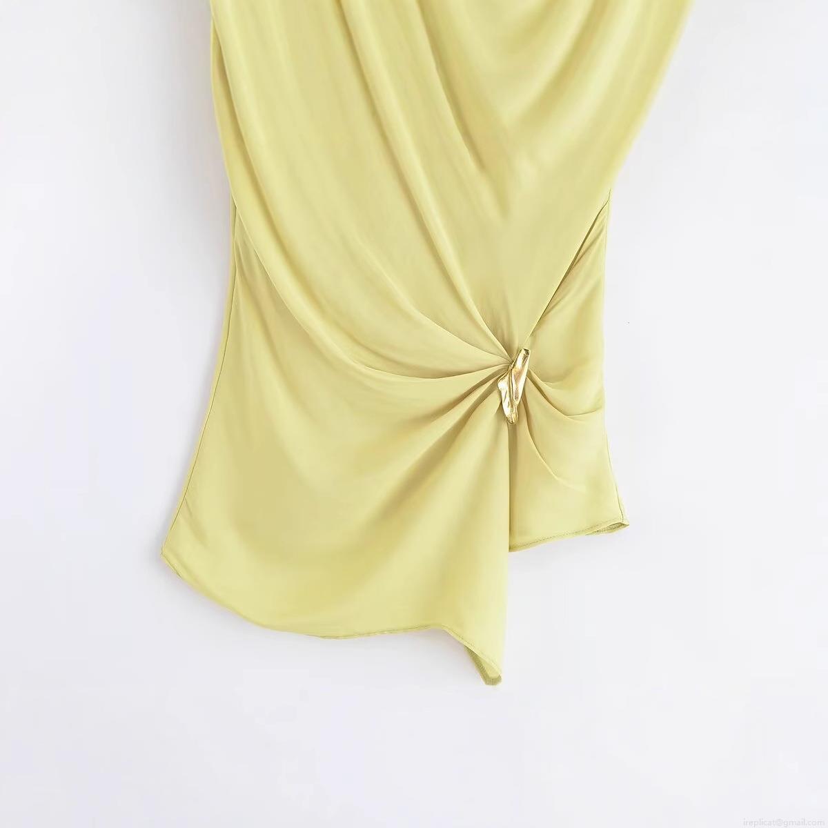 • Women's Asymmetric Single Shoulder Satin Top With Metal Buckle Ruched Draping Sleeveless Solid Color Blouse For Party Clubwear Socialite Fashionable Summer Clothing