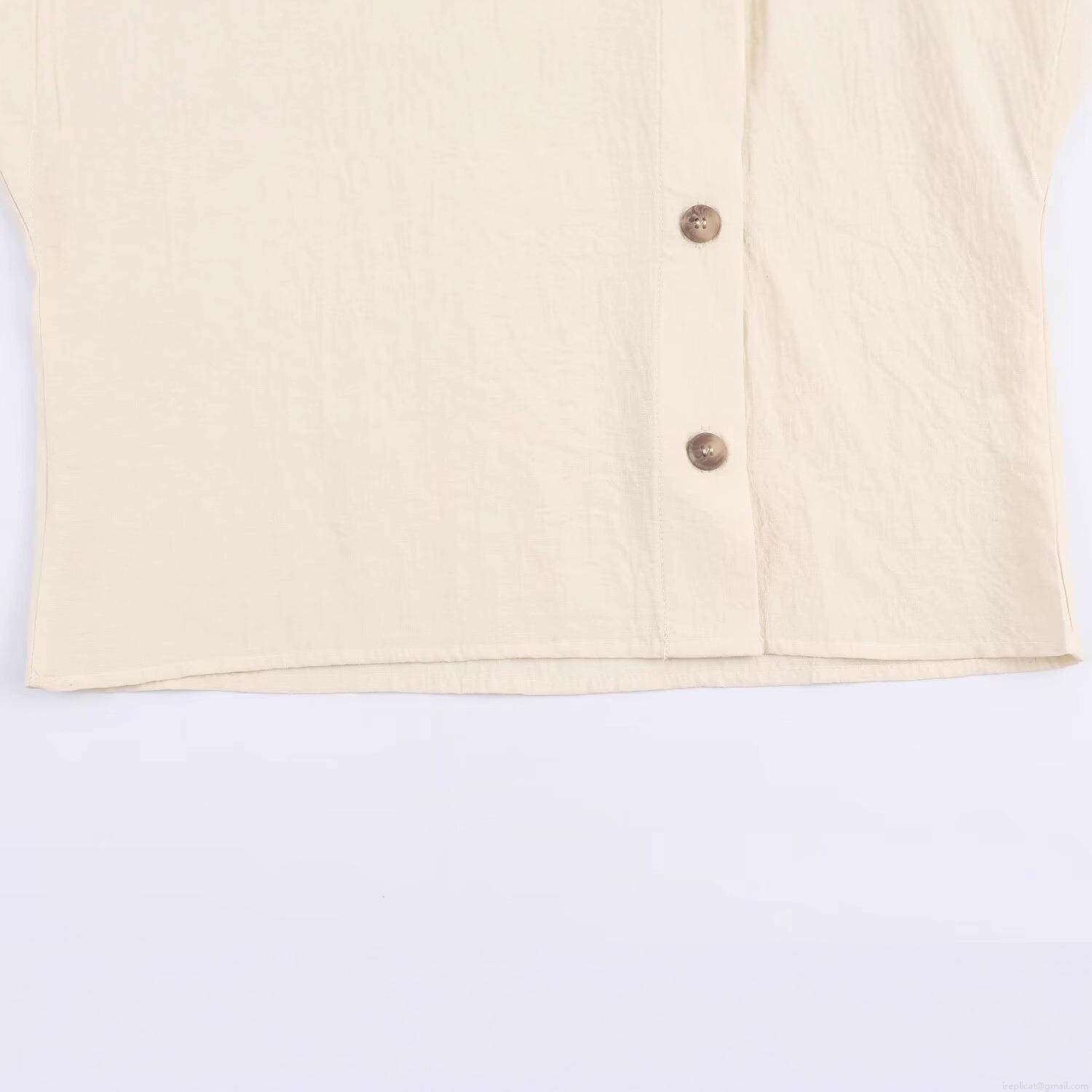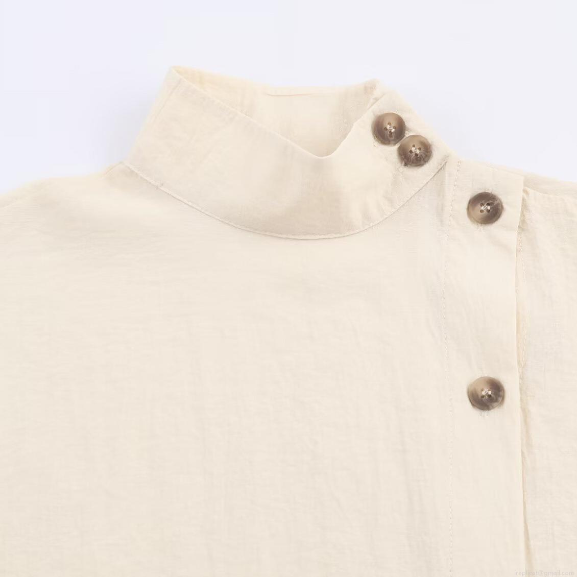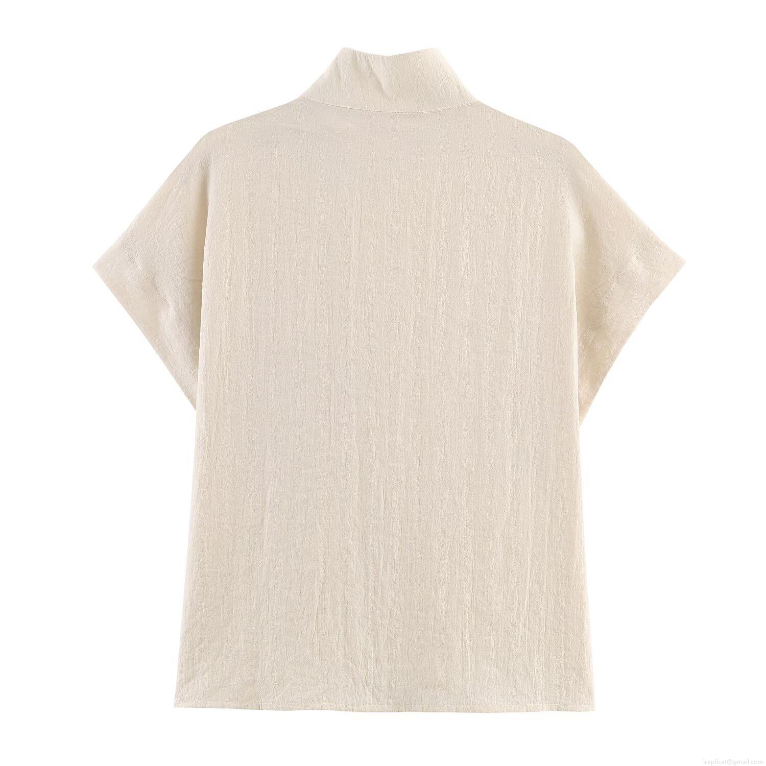 • Women's Blouse Shirt Minimalist Stand Collar Short Sleeve Contrast Buttons Side Single Breasted Solid Color Casual Daily Work Office Street Western Style Top