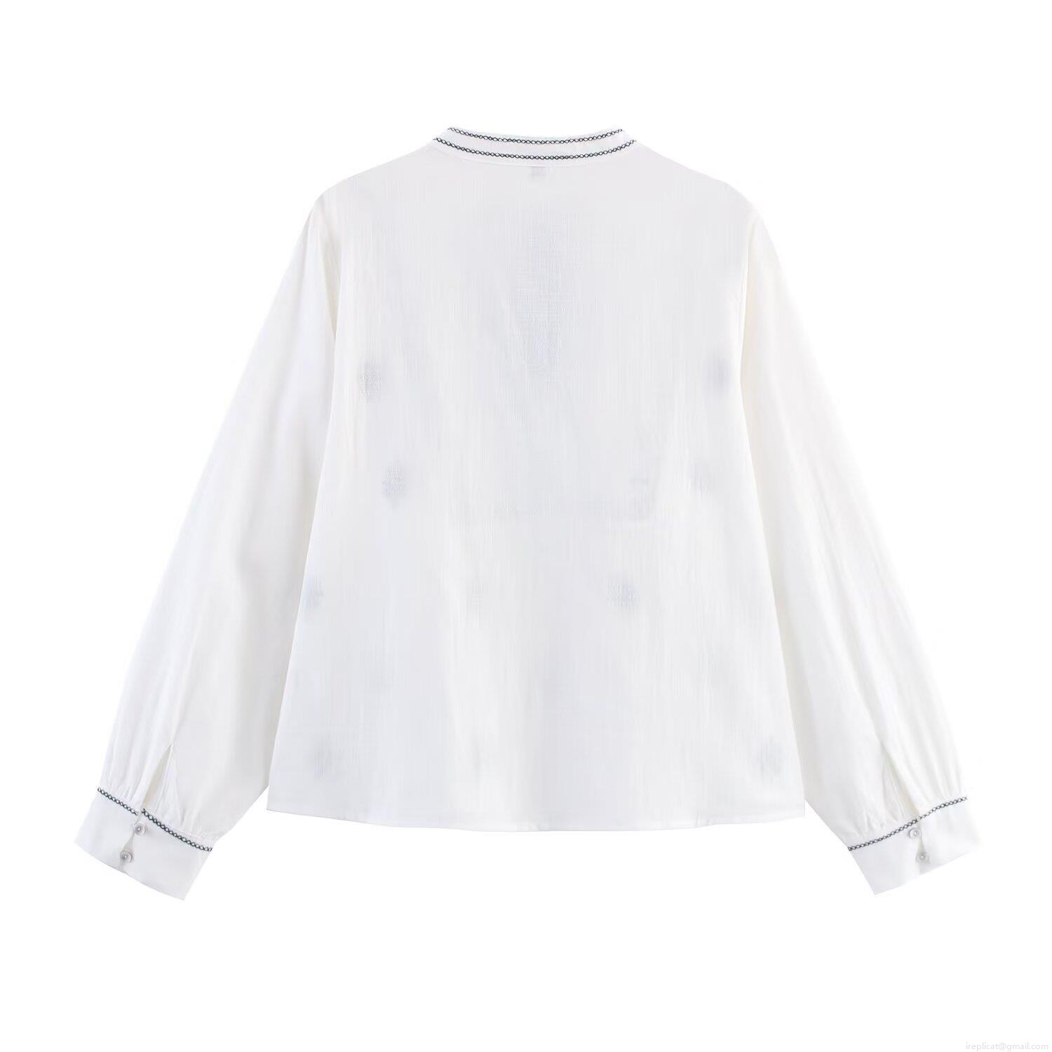 • Women's Bohemian Embroidery V-Neck Tassel Blouse Ethnic Long Sleeve Cotton Blend Top Casual Spring Autumn Shirts For Women