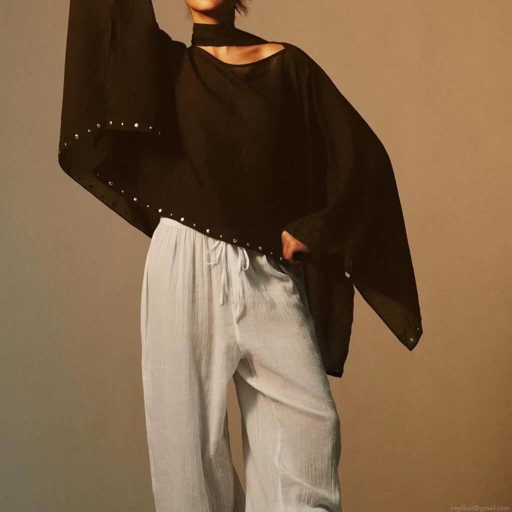 Solid Color, Rivet, Neckband, Lace, Batwing Sleeves