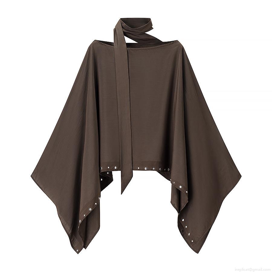 • Women's Bohemian Loose Batwing Sleeve Blouse Scarf Neck Metal Rivet Design Top Summer Casual Halter Cape Style Polyester Shirt Solid Coffee Color