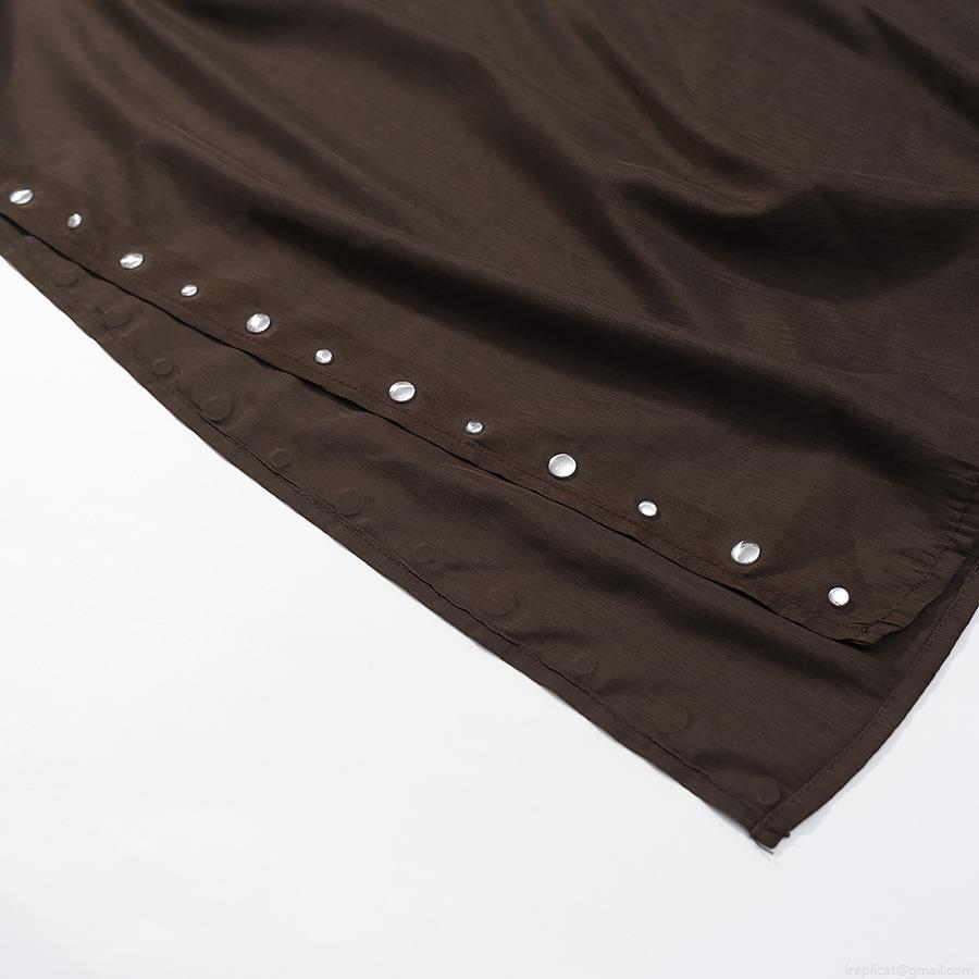 Women's Bohemian Loose Batwing Sleeve Blouse Scarf Neck Metal Rivet Design Top Summer Casual Halter Cape Style Polyester Shirt Solid Coffee Color