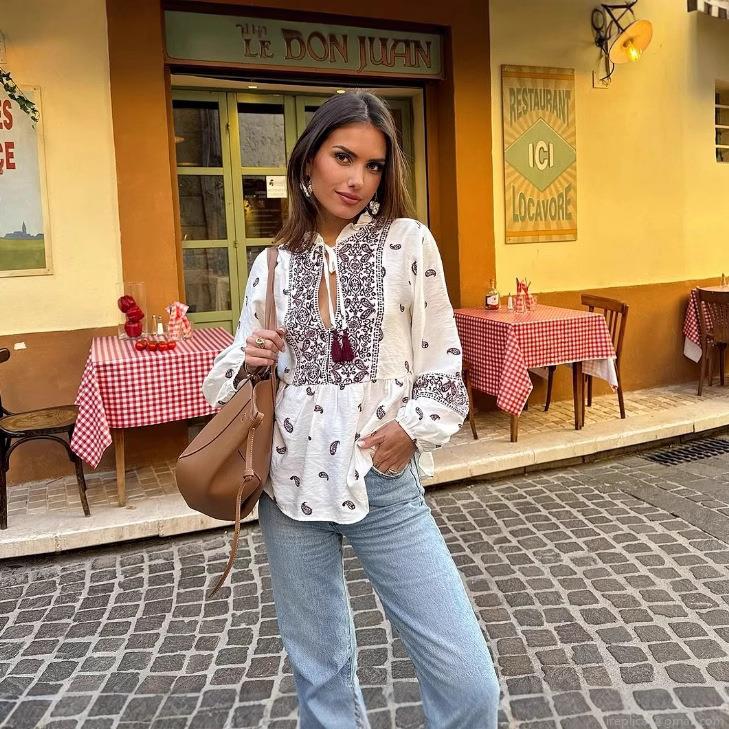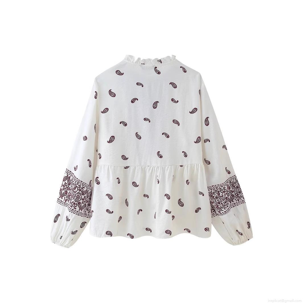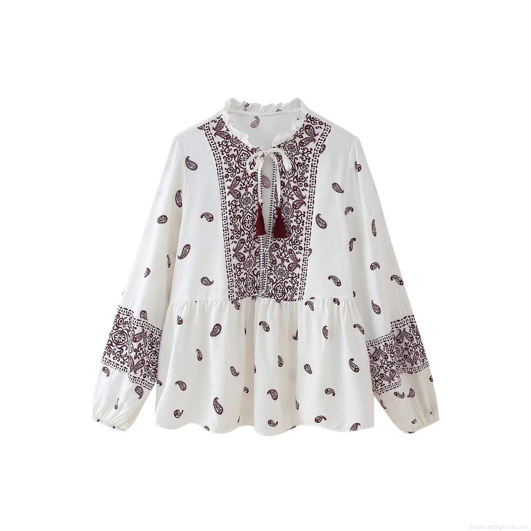 • Women's Bohemian Paisley Print Blouse 100% Polyester V-Neck Ruffle Tie Tassel Long Sleeve Casual Shirt Top For Vacation Travel Streetwear
