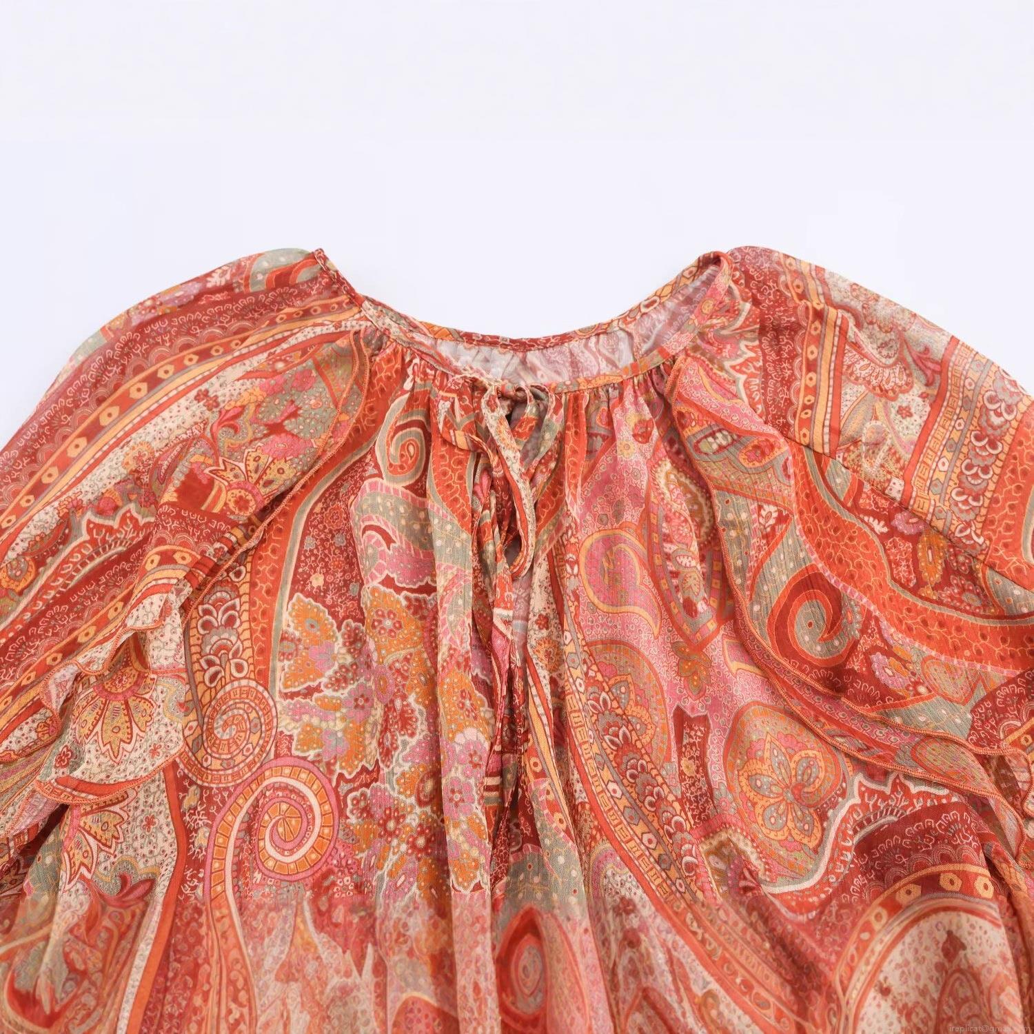 • Women's Bohemian Paisley Print Blouse Polyester Chiffon Ruffle Bell Sleeve Tie-Neck Pullover Shirt For Vacation Street Daily Casual Chic Tops