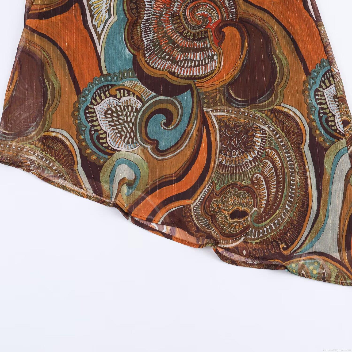 Pleats, Ruffles, Neckband, Metal Wire, Paisley Print, Asymmetrical Hem