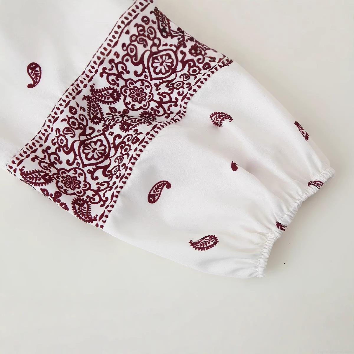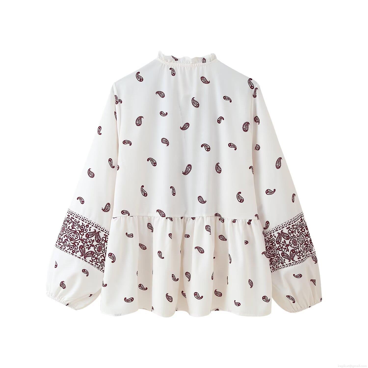 Women's Bohemian Paisley Print V-Neck Blouse Tassel Tie Long Sleeve Polyester Casual Shirt Loose Fit Streetwear Top For Women