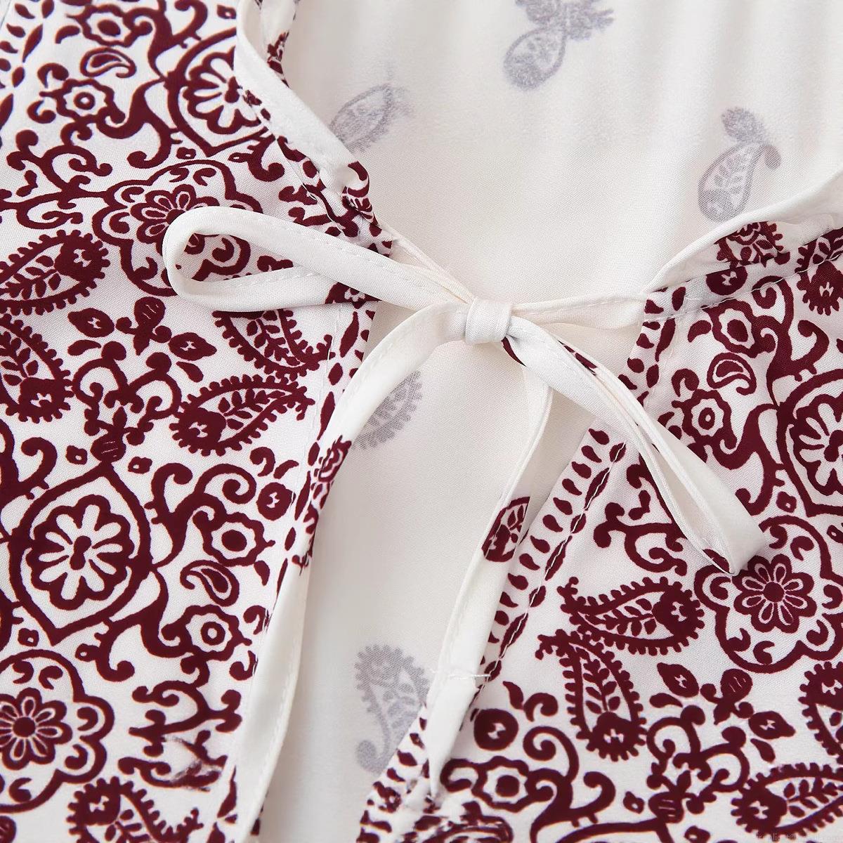• Women's Bohemian Paisley Print V-Neck Blouse Tassel Tie Long Sleeve Polyester Casual Shirt Loose Fit Streetwear Top For Women