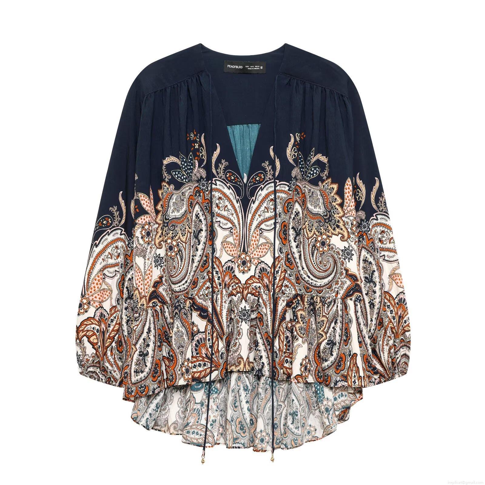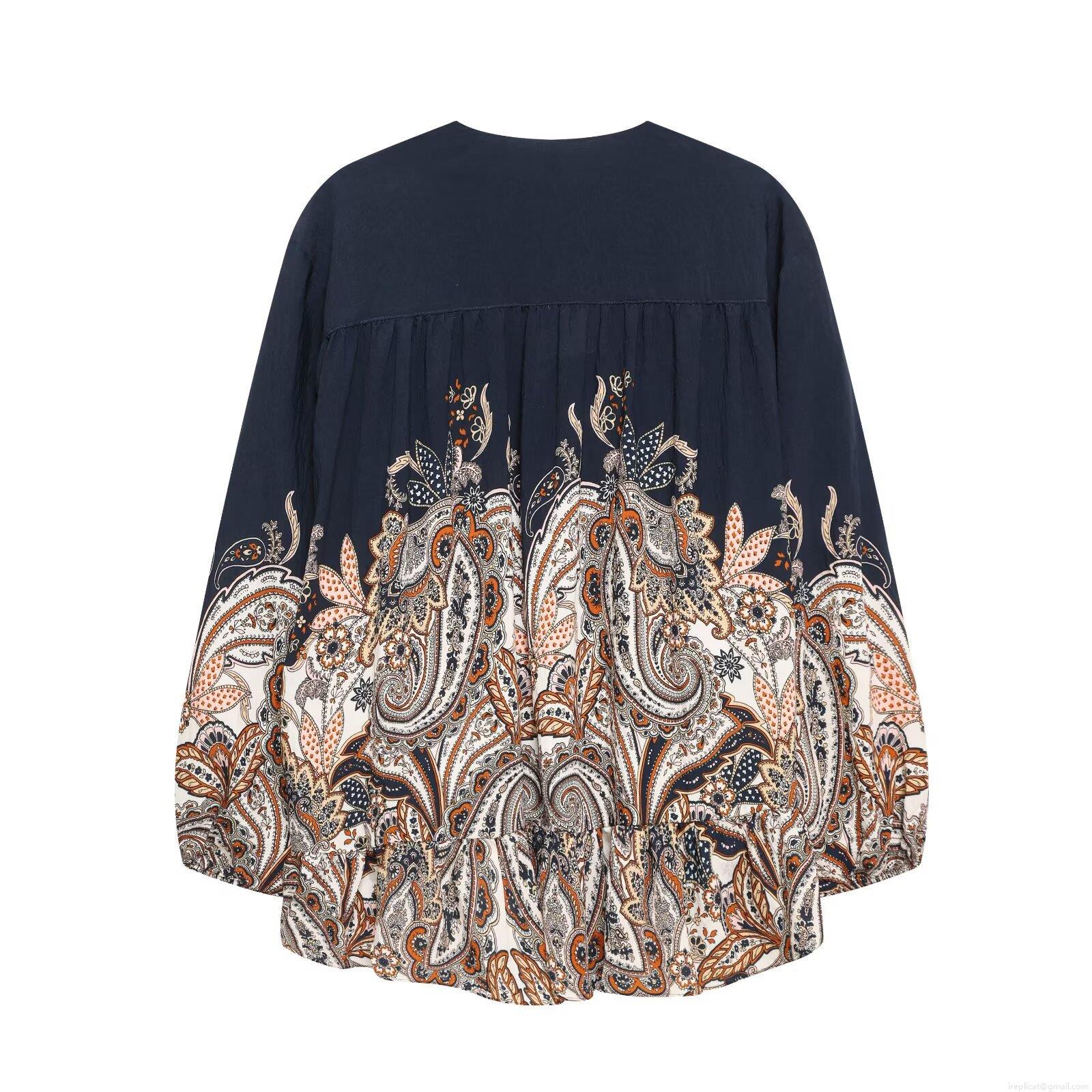 • Women's Bohemian Paisley Printed Blouse V Neck Long Sleeve Loose Polyester Shirt Ethnic Style Casual Top For Vacation Daily Wear