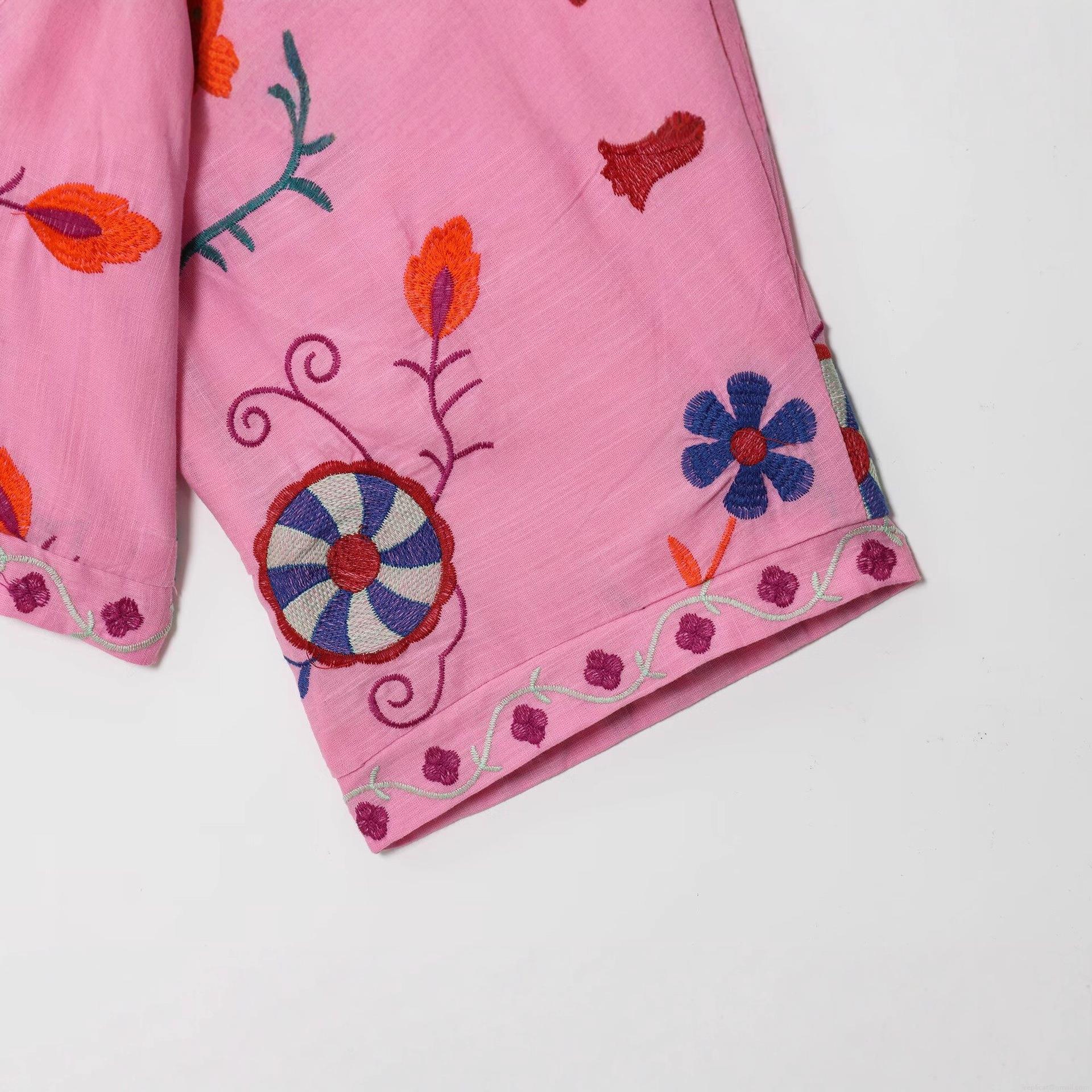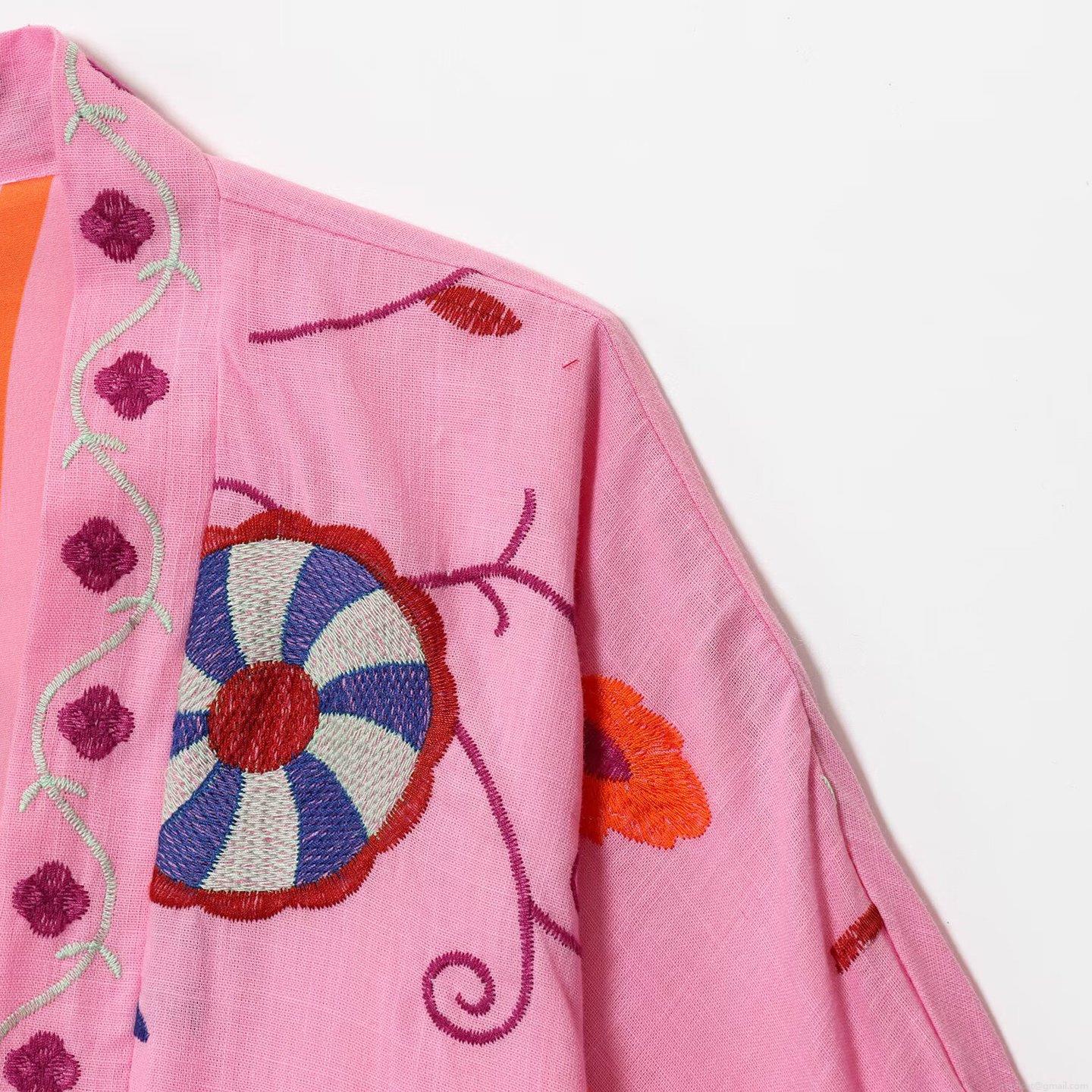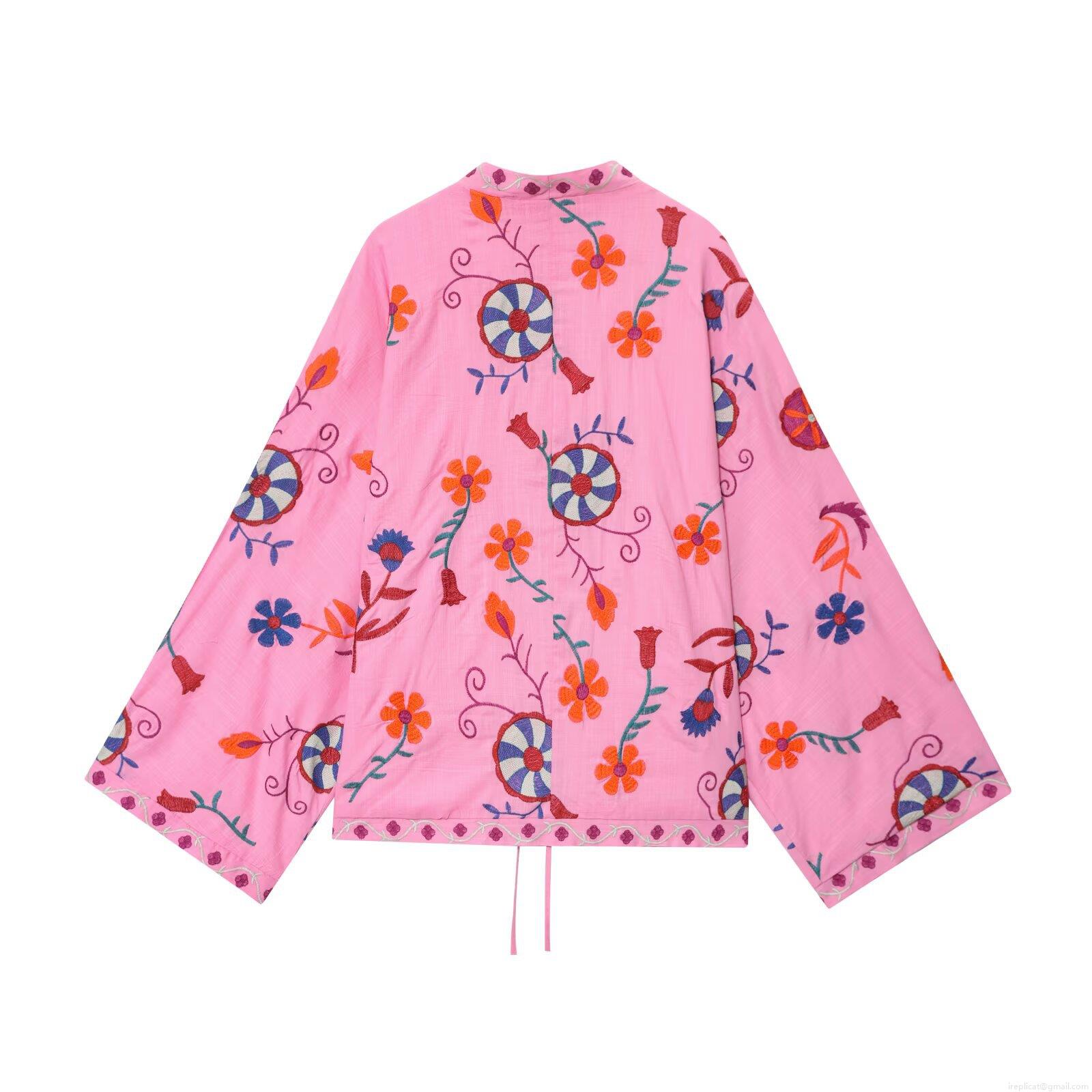 • Women's Boho Embroidery Pink Cardigan Shirt Tie-Front Long Bell Sleeve Polyester Blouse Ethnic Floral Geometric Pattern Loose Outwear Streetwear Top