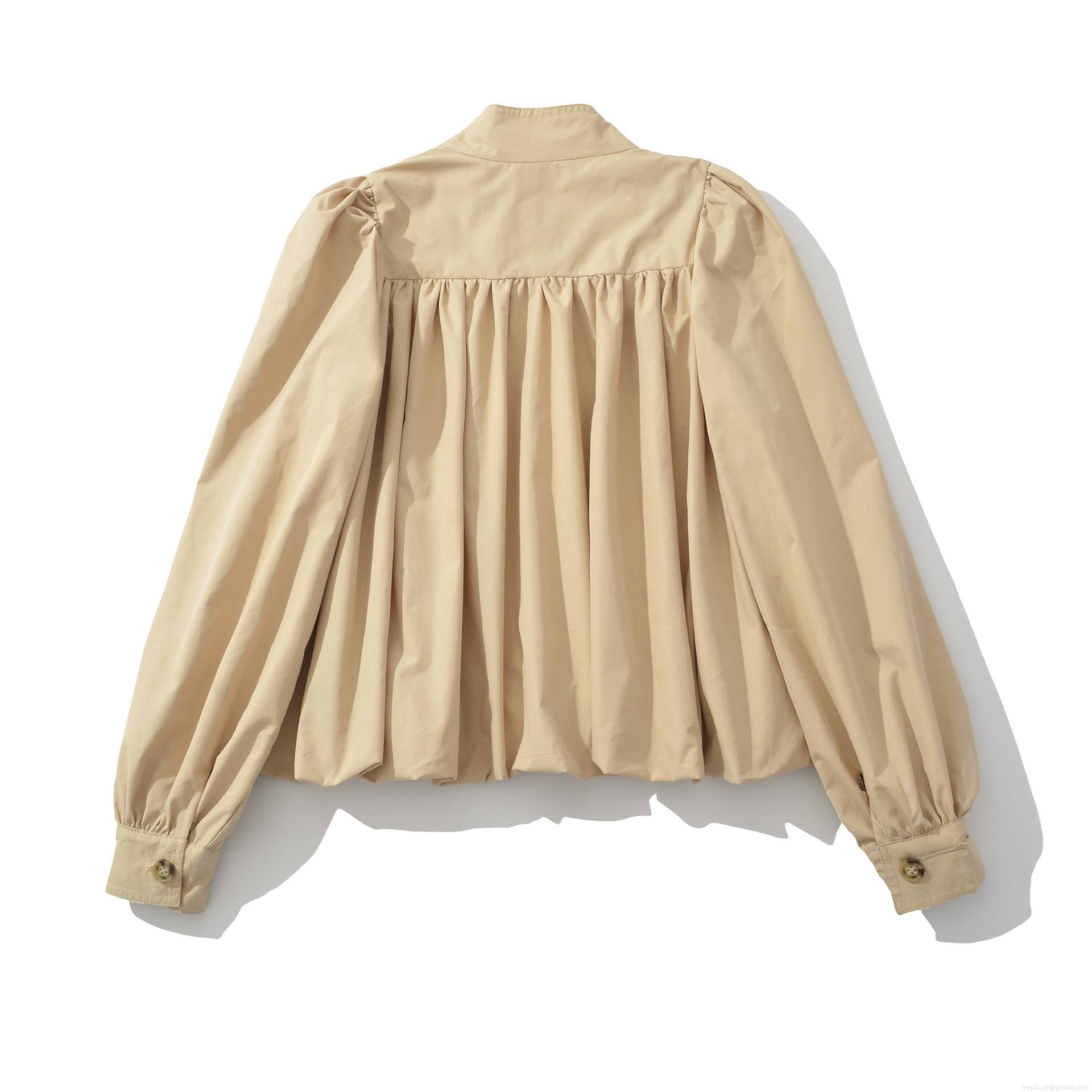 • Women's British Style Pleated Blouse Stand Collar Lantern Sleeve Solid Color Cotton Blend Elegant Office Lady Casual Chic Shirts For Women