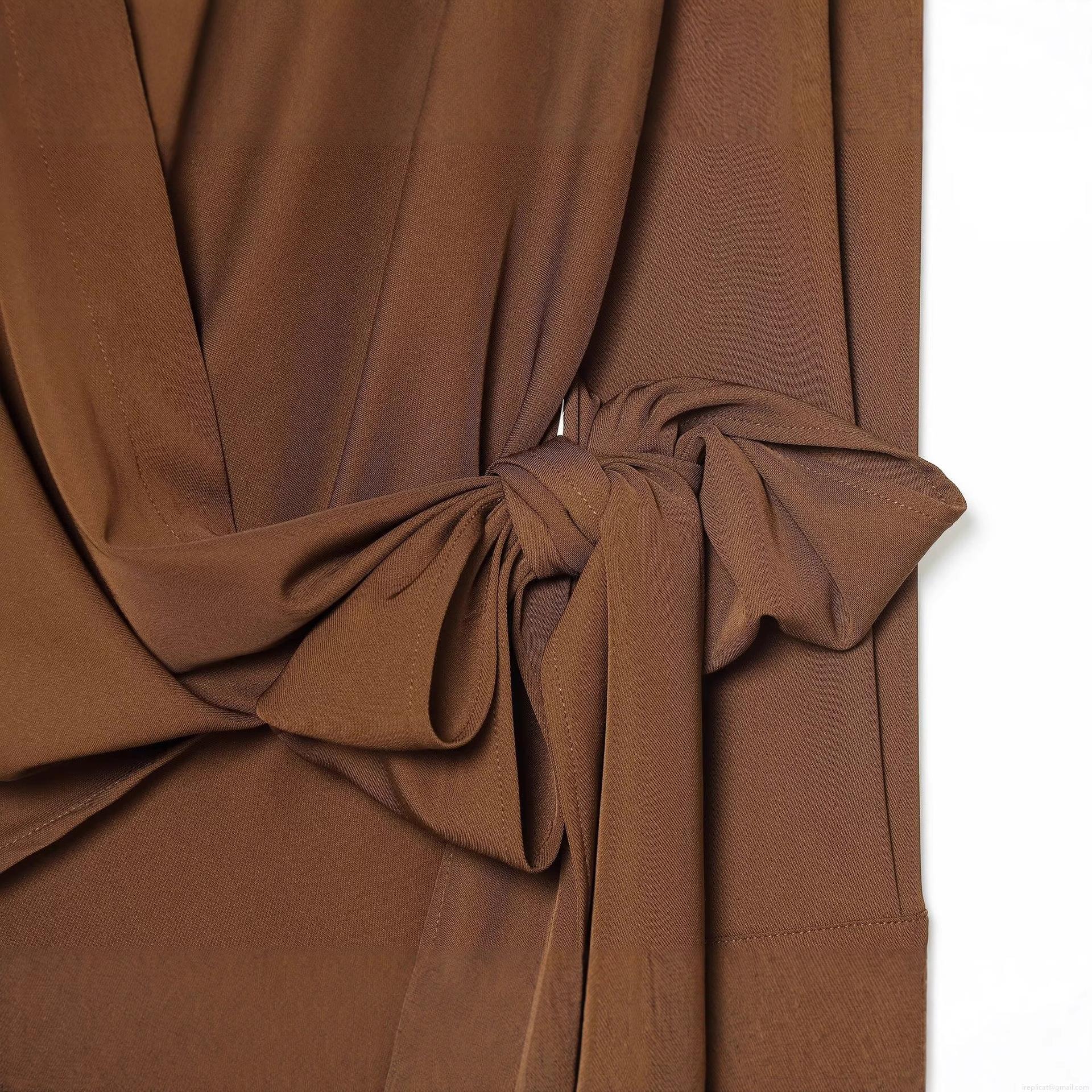 Women's Caramel Long Sleeve Wrap Blouse Elegant V-Neck Tie Waist Pleated Polyester Shirt Fashion Casual Tops For Women Soft Woven Fabric Blouse