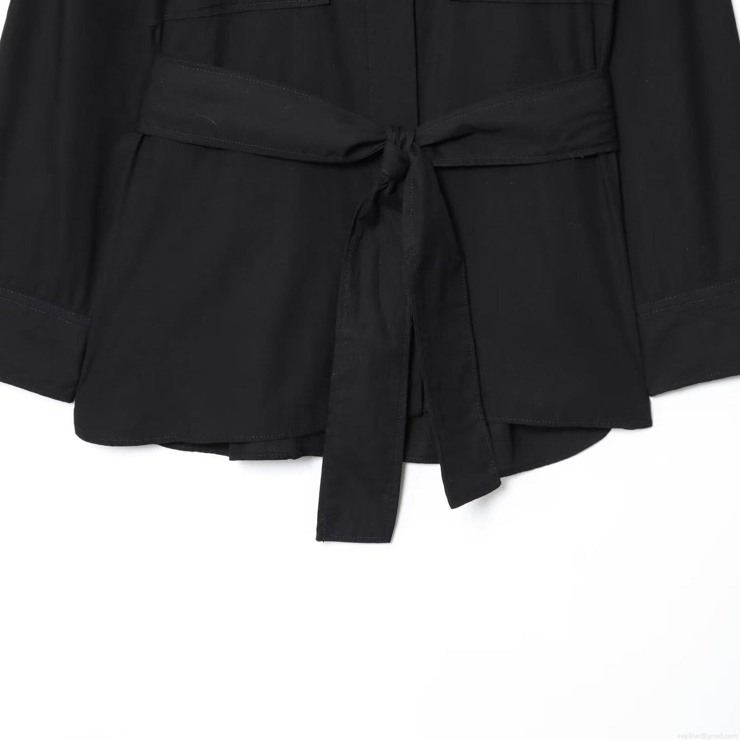 • Women's Casual 100% Cotton Long Sleeve Shirt With Tie Waist Belt And Pockets Turn-down Collar Loose Fit Blouse For Autumn Work Daily Minimalist Style