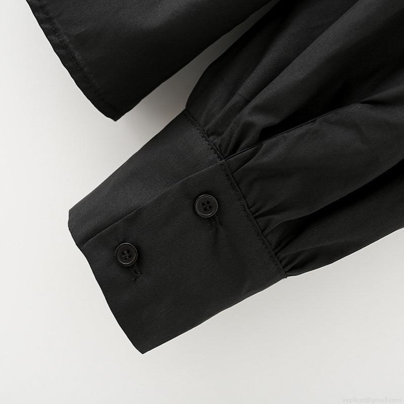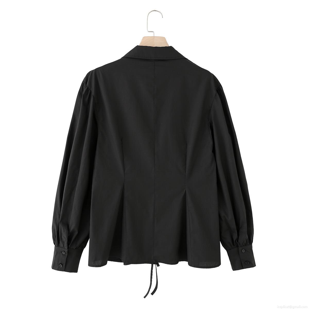 • Women's Casual 100% Cotton Poplin Shirt Long Lantern Sleeve Bow Tie Front Blouse Solid Black Loose Fit Drawstring Waist Top For Daily Office Wear