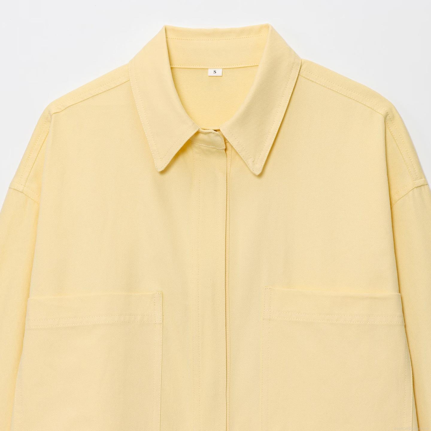• Women's Casual Cotton Blend Long Sleeve Shirt Jacket Loose Fit Button Down Blouse With Double Pockets For Daily Commuting Office Simple Style Top