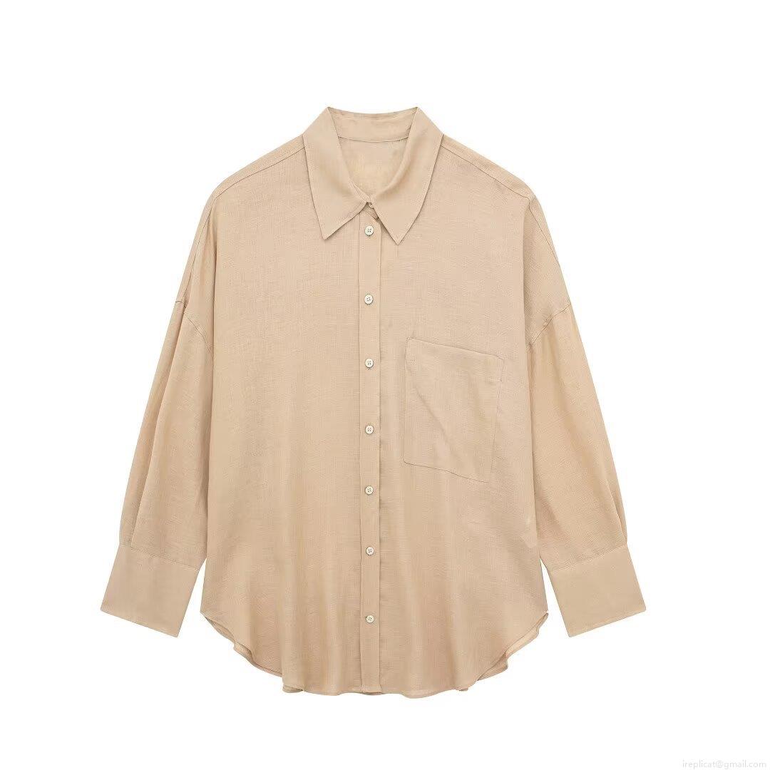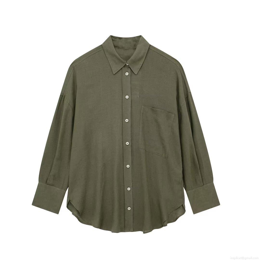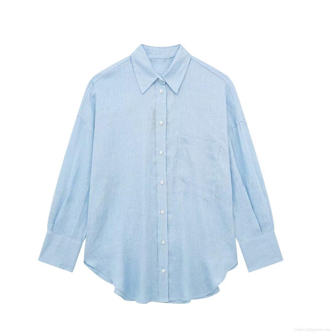• Women's Casual Cotton Linen Long Sleeve Shirt Loose Fit Lapel Button Down Blouse With Pocket Solid Color Streetwear Tops For Daily Commuting