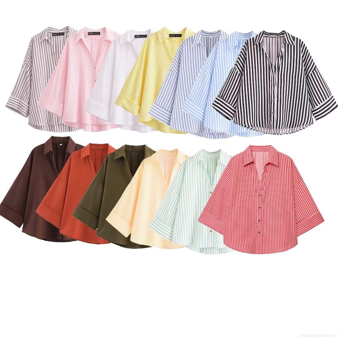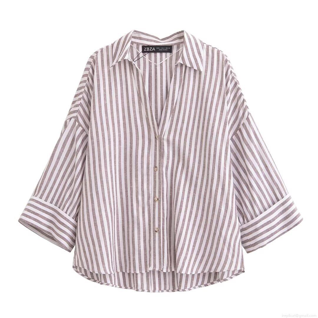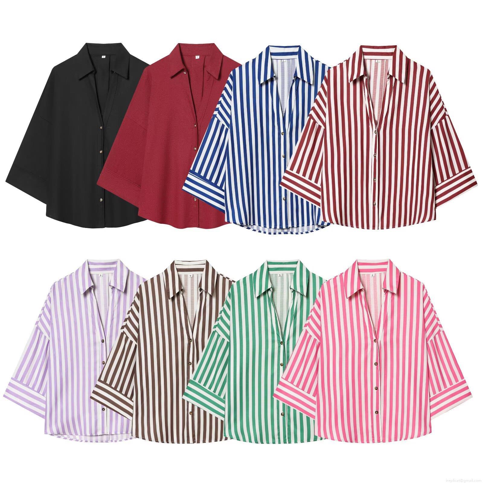 • Women's Casual Linen Blend Blouse Loose Fit Oversized V-Neck Button Down Striped Solid Shirt Summer Spring Comfort Tops