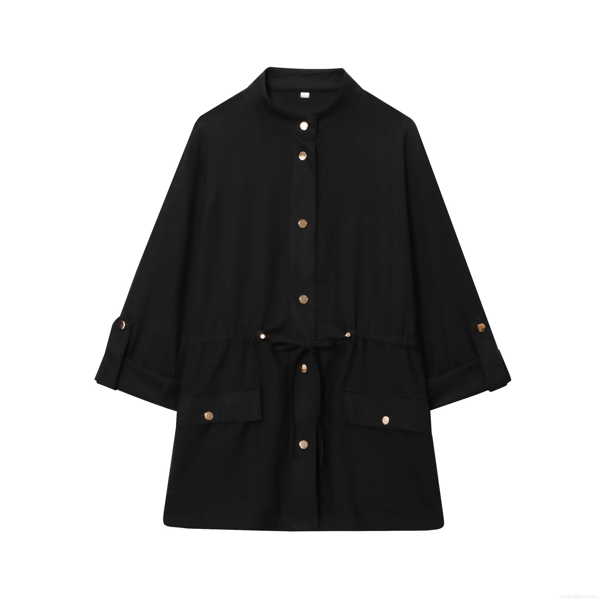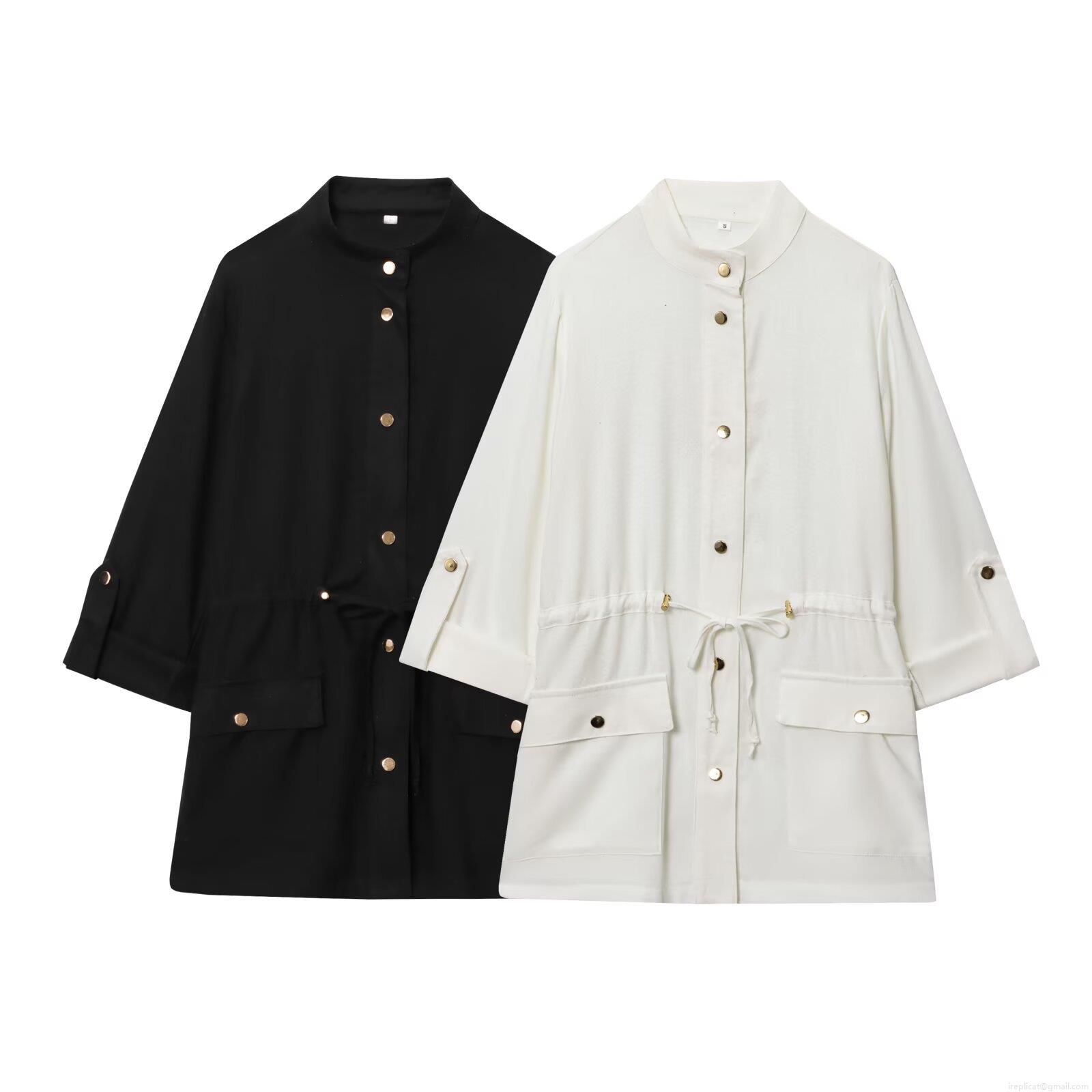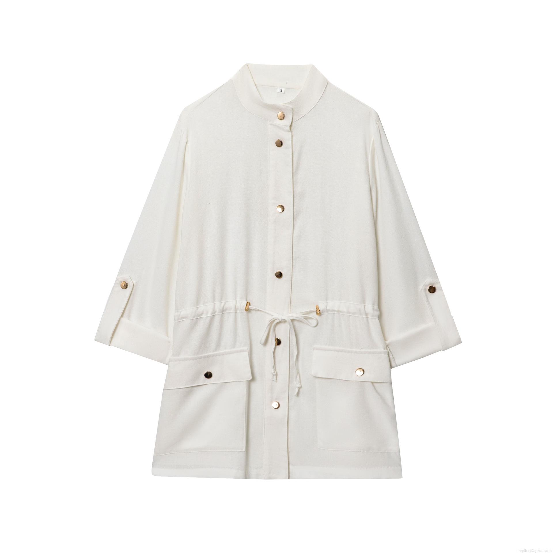 • Women's Casual Linen Blend Safari Style Shirt Jacket Drawstring Waist Fashion Solid Color Long Sleeve Blouse With Metal Buttons And Pockets For Vacation