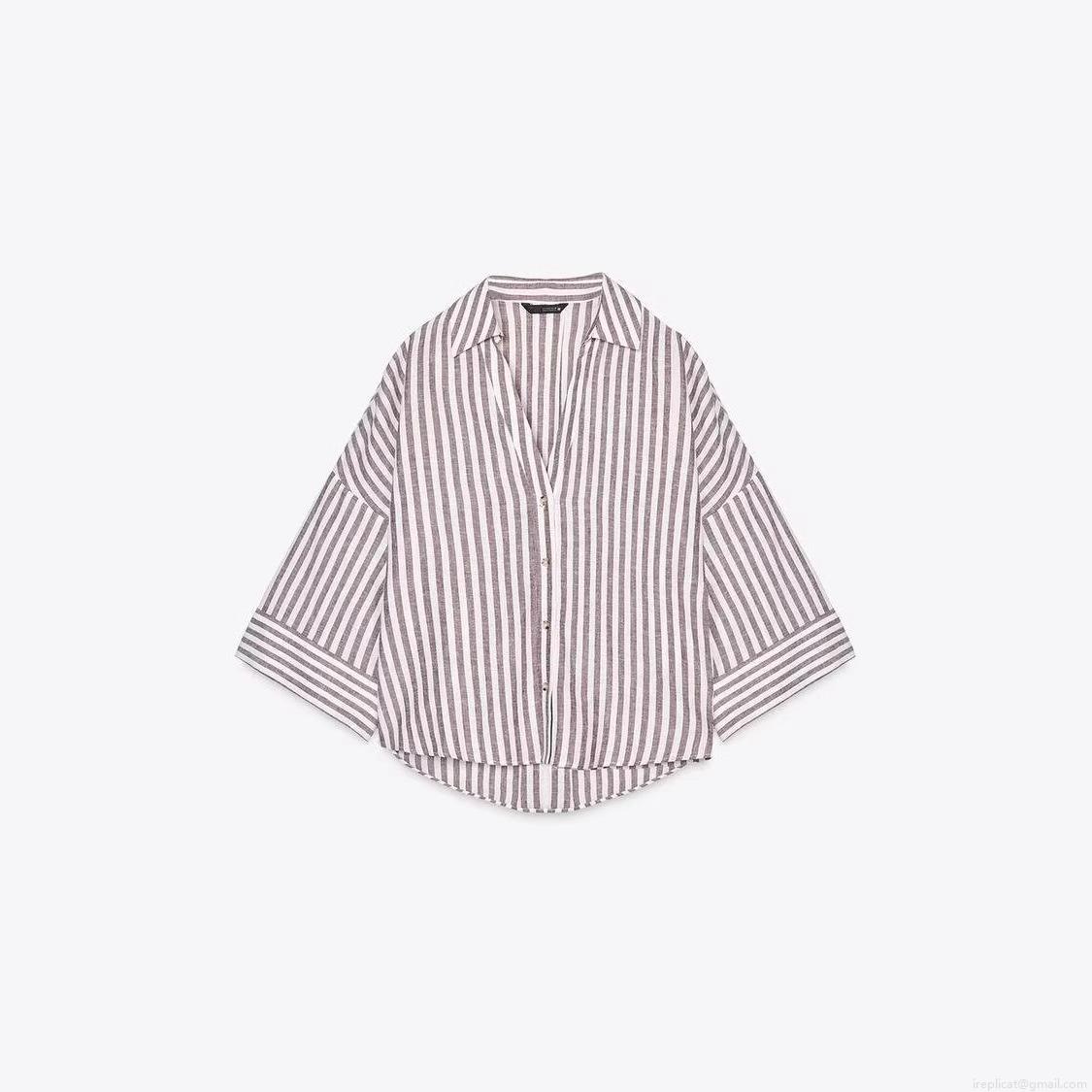 Women's Casual Linen Blend Shirt Vertical Striped Solid Color Button Down Blouse Oversized Lightweight Long Sleeve Streetwear Top For Lady