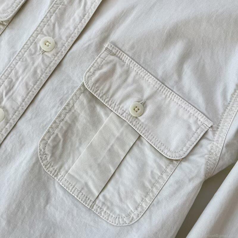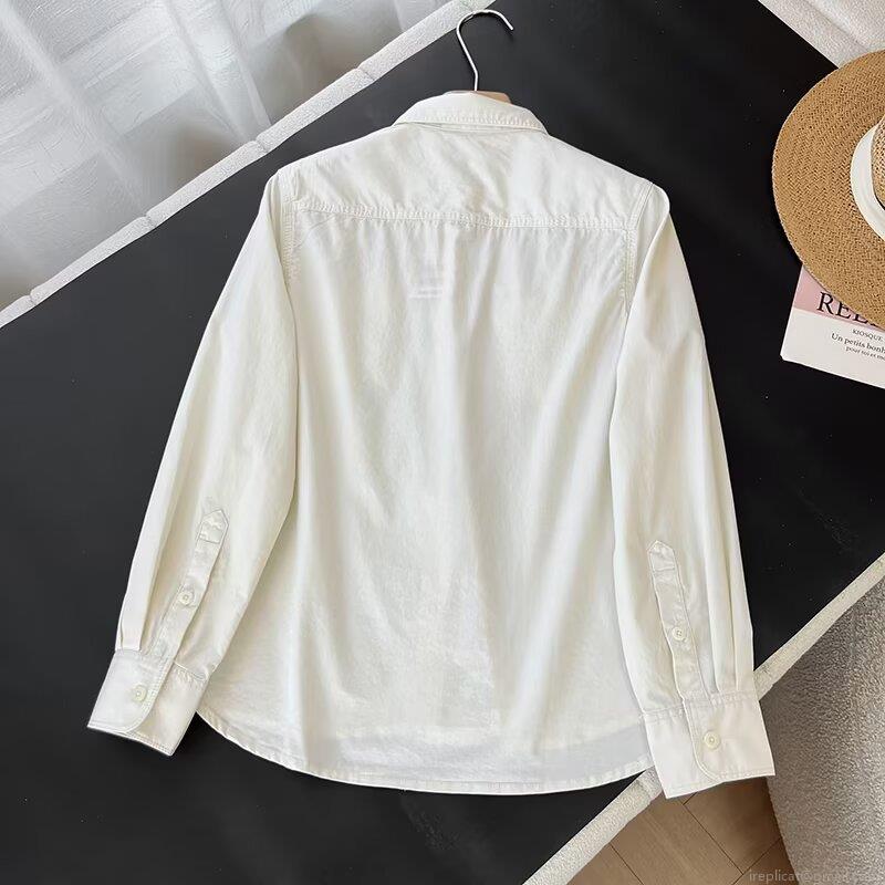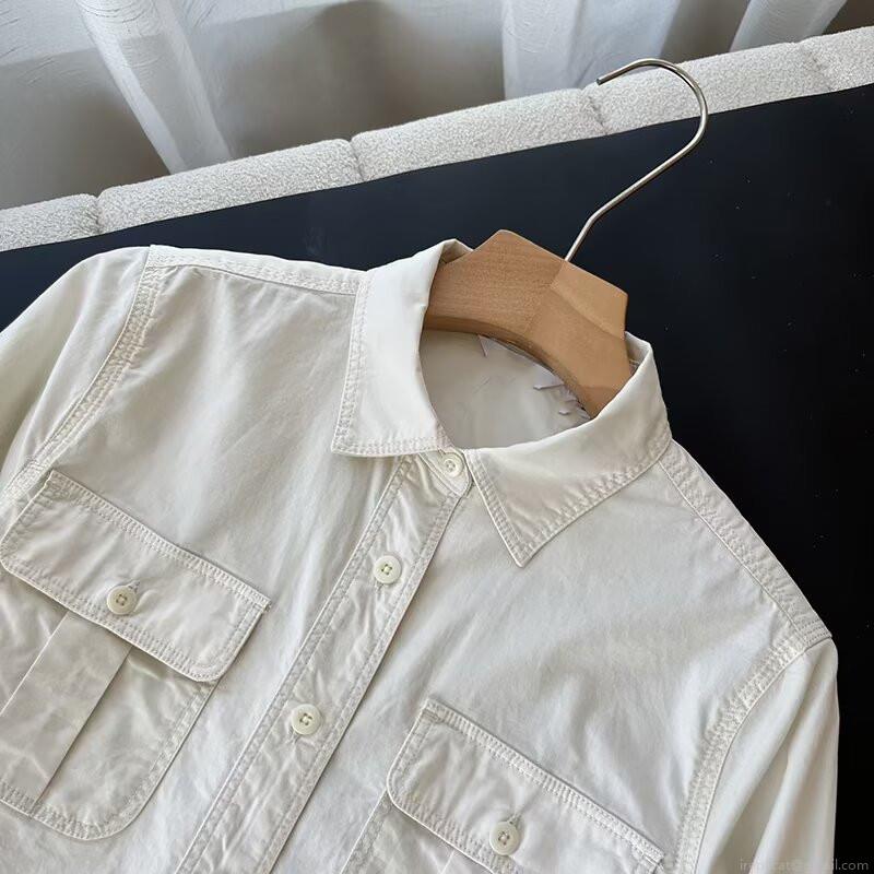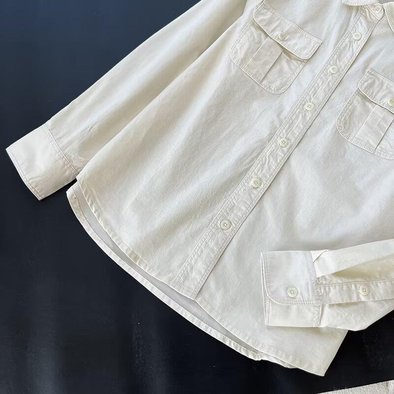 • Women's Casual Long Sleeve Button Down Shirt Loose Cotton Denim Blouse Dual Pockets Minimalist Solid Color Lapel Top For Autumn Daily Wear