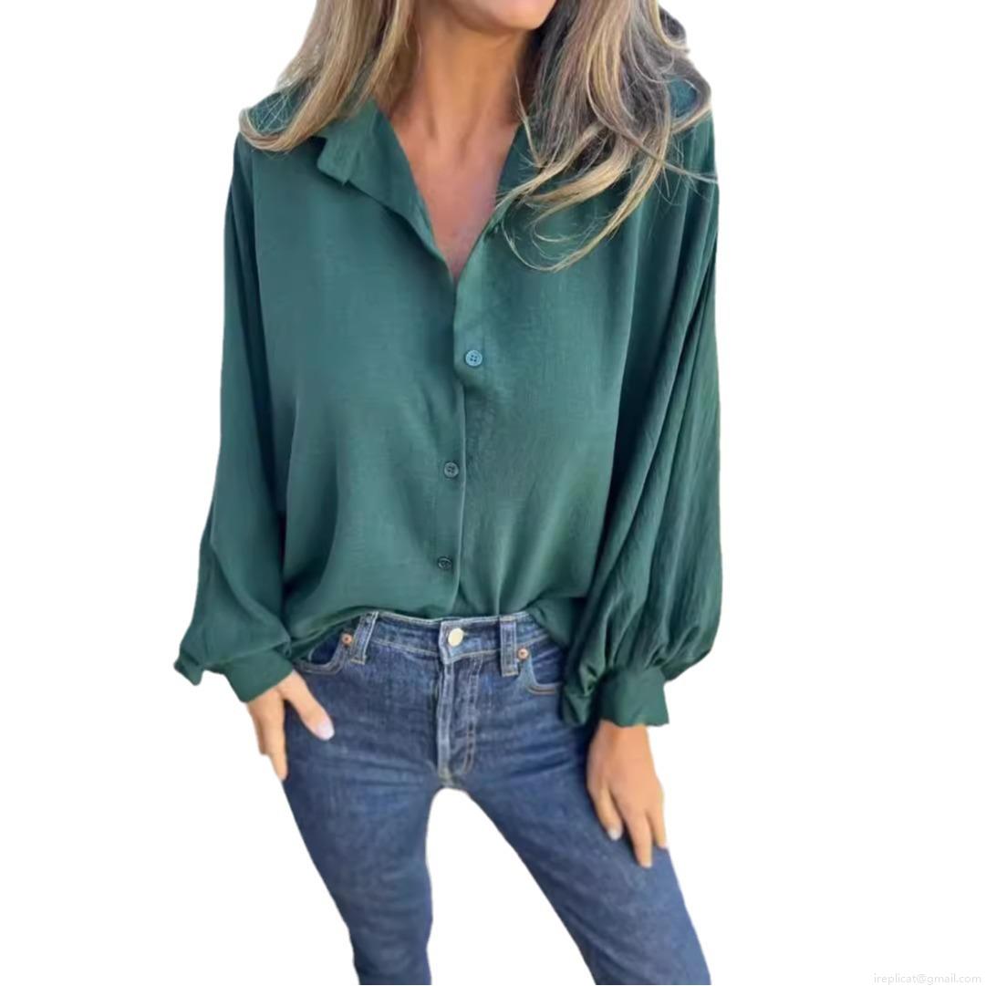 • Women's Casual Long Sleeve Button Down Shirt Polyester Spandex Texture Crepe Blouse Lapel Collar Lantern Sleeve Top for Autumn Winter Daily Fashion