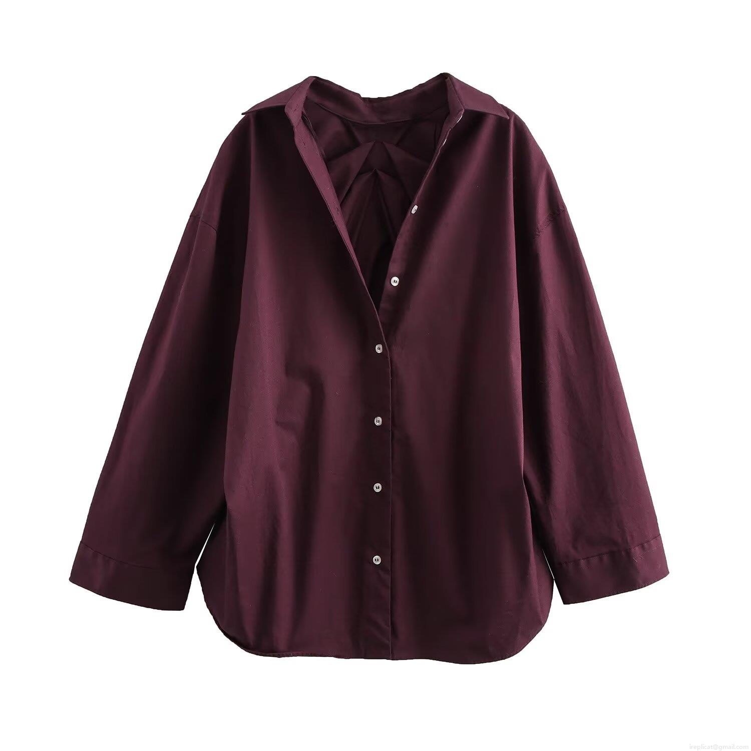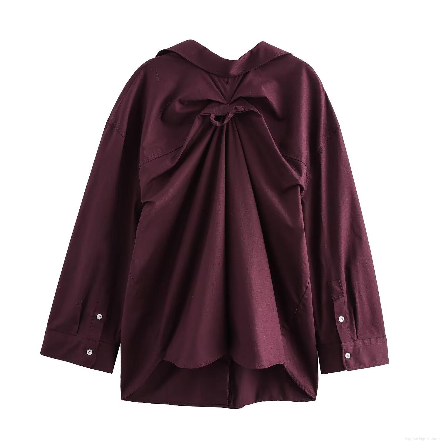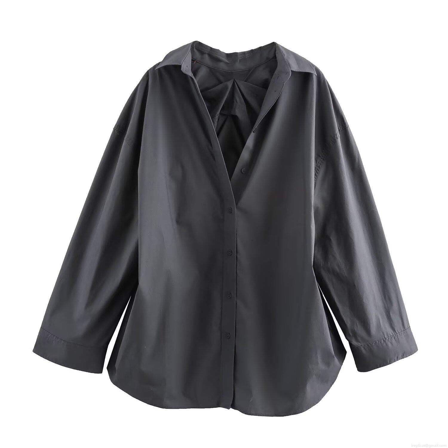 • Women's Casual Long Sleeve Shirt Blouse Oversized Solid Color Back Pleated Poplin Top For Daily Streetwear Women Fashion