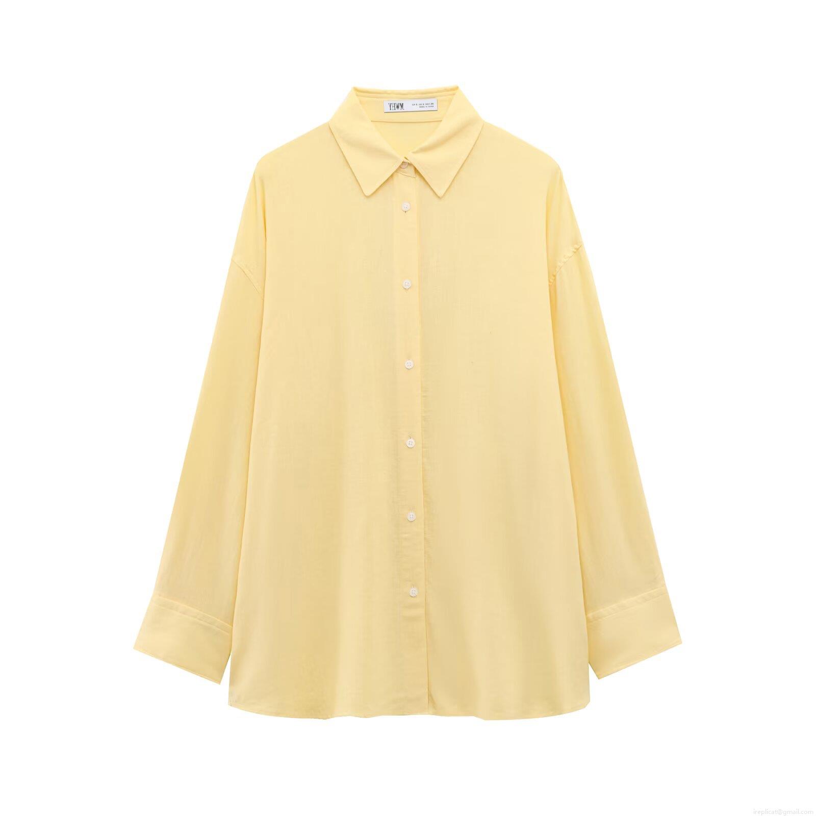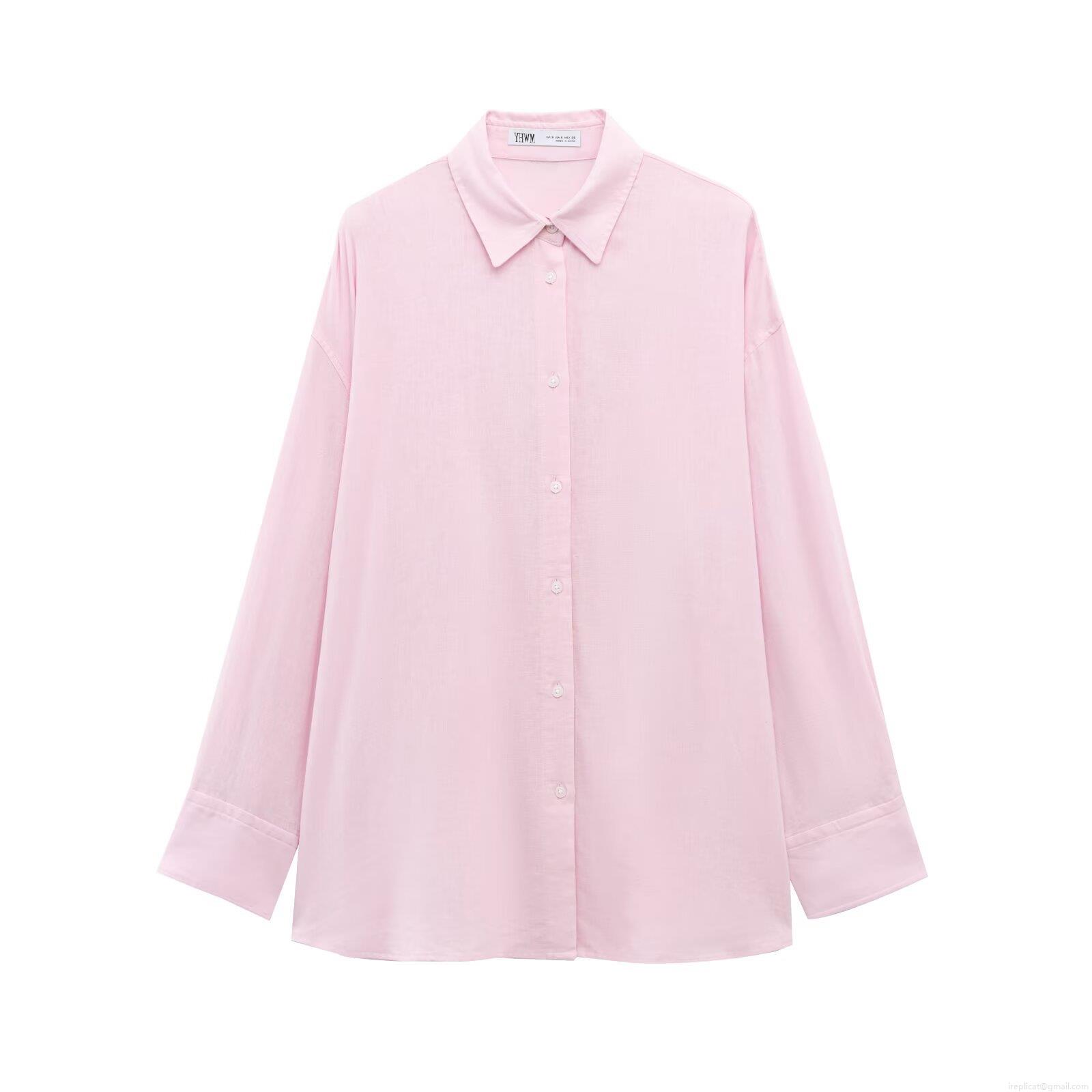 • Women's Casual Long Sleeve Shirt Cotton Linen Blend Button Down Blouse Back Drawstring Detail Loose Solid Color Spring Autumn Fashion Minimalist Top