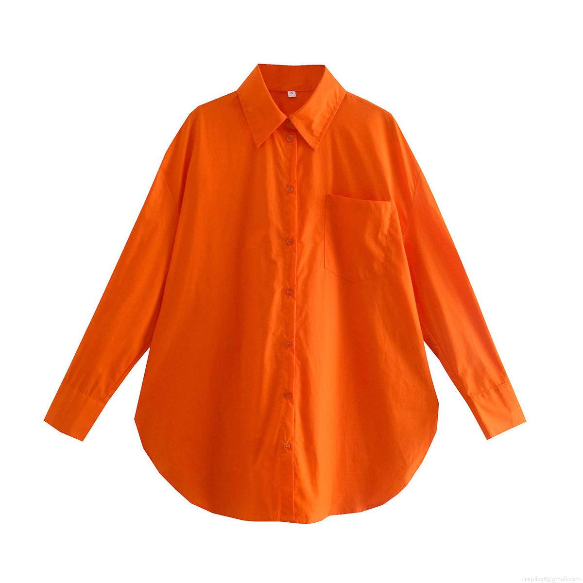 • Women's Casual Loose Cotton Long Sleeve Button Down Shirt With Pocket Lapel Solid Color Streetwear Tops For Summer Autumn Ladies Fashion Woven Blouse