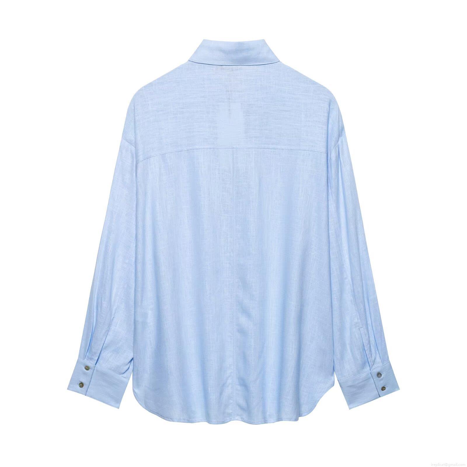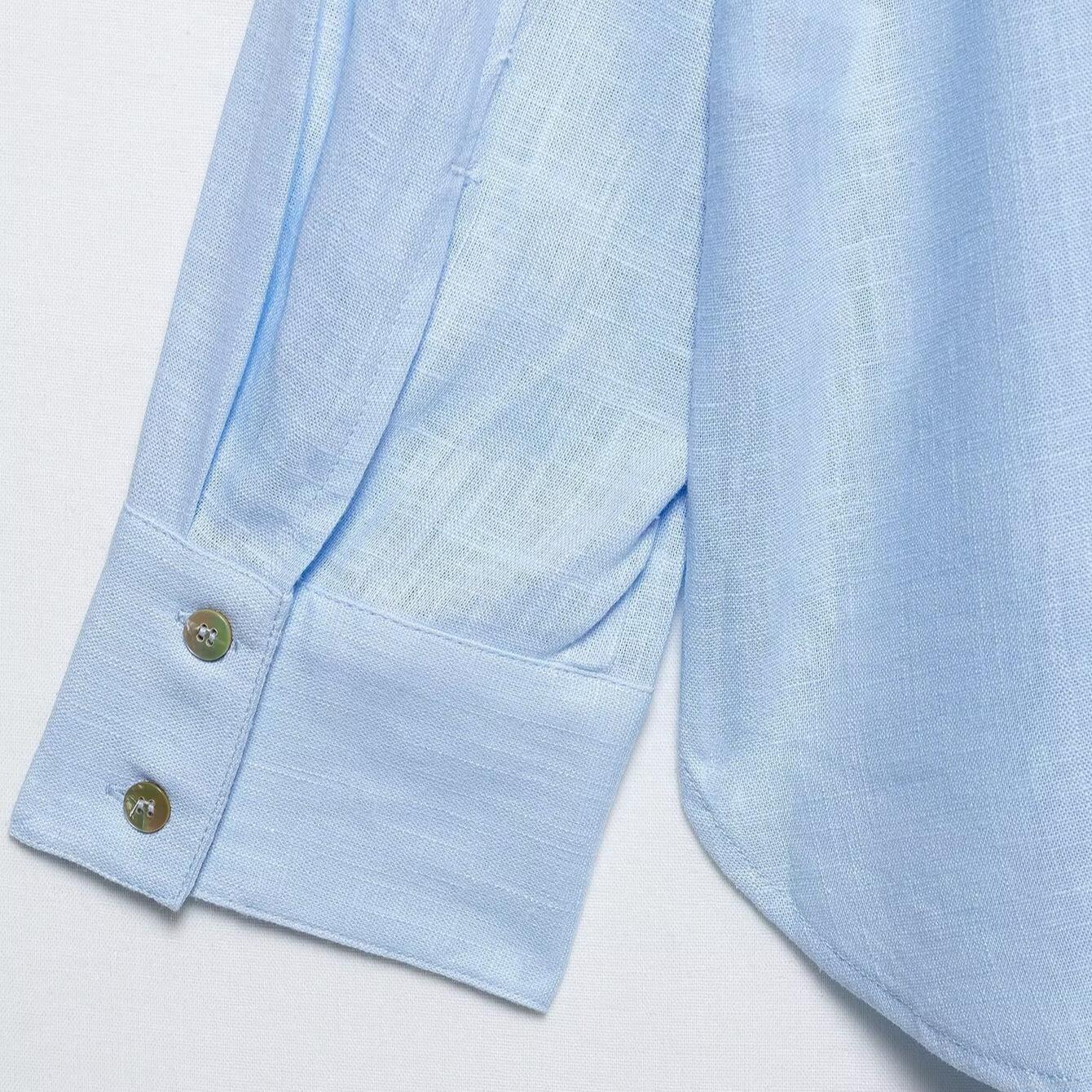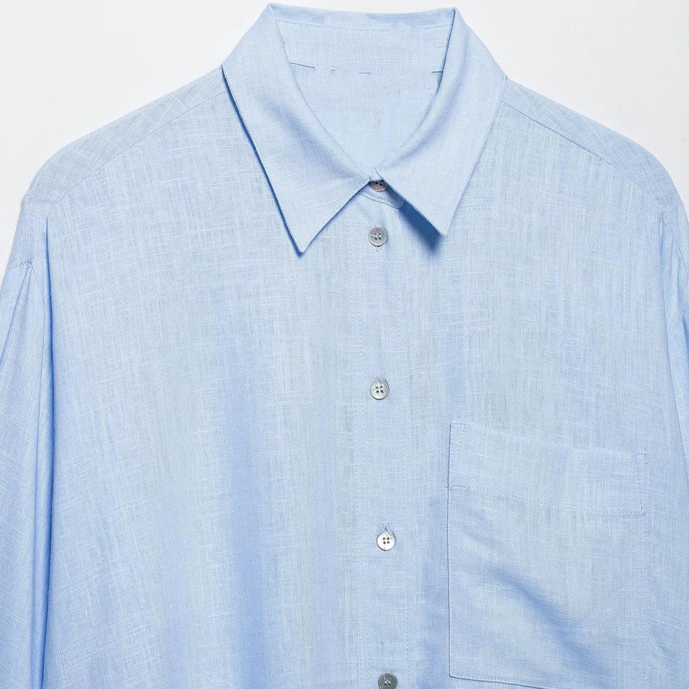 • Women's Casual Loose Linen-Look Long Sleeve Shirt Button Down Blouse with Pocket Solid Color Mid-Length Tops for Spring Summer Office Commute