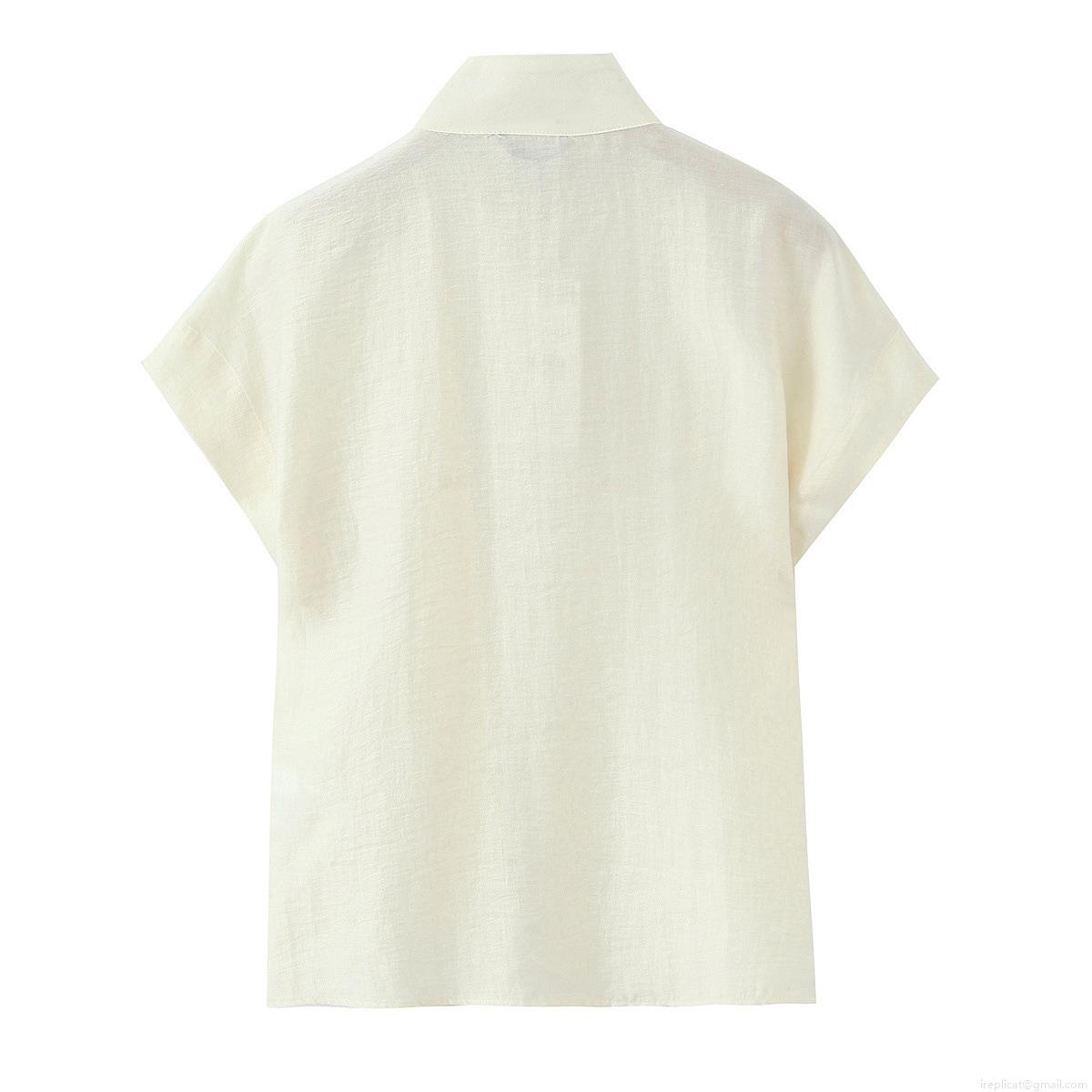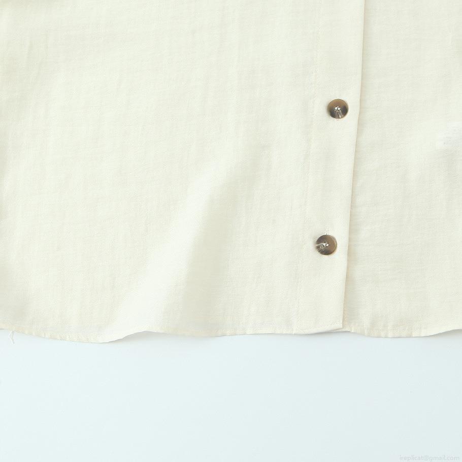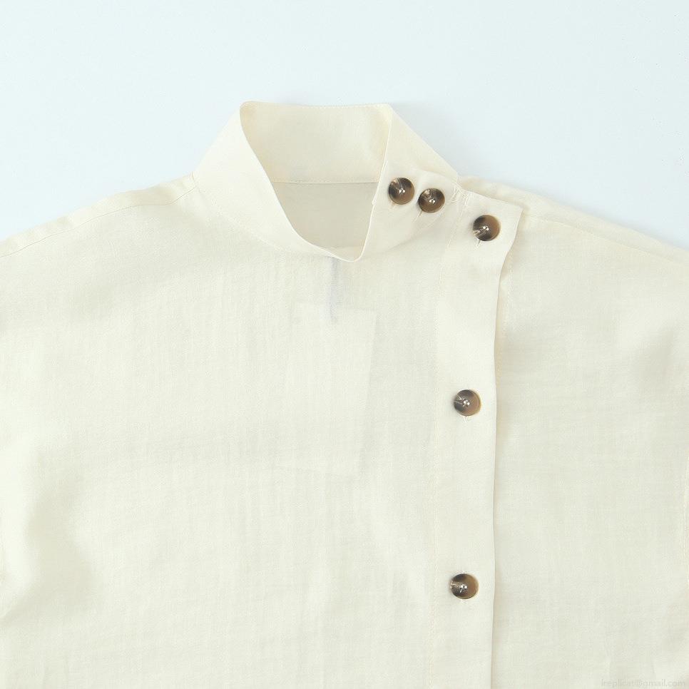 • Women's Casual Loose Stand Collar Button-Down Shirt Polyester Spandex Linen-Like Texture Crinkled Fabric Long Sleeve Solid Color Japanese Korean Style Simple Elegant For Daily Office Ladies