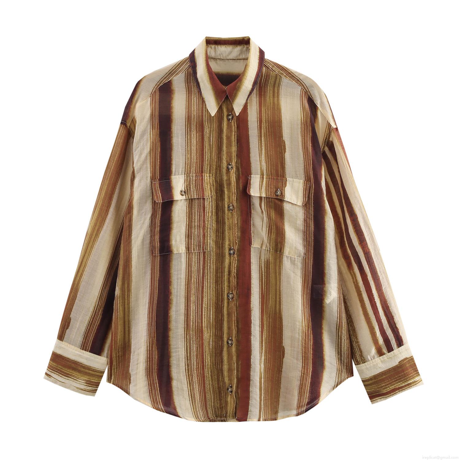 • Women's Casual Loose Stripe Blouse Long Sleeve Button Down Shirt Lightweight Polyester Tops Commuter European Style Streetwear for Spring Summer Autumn