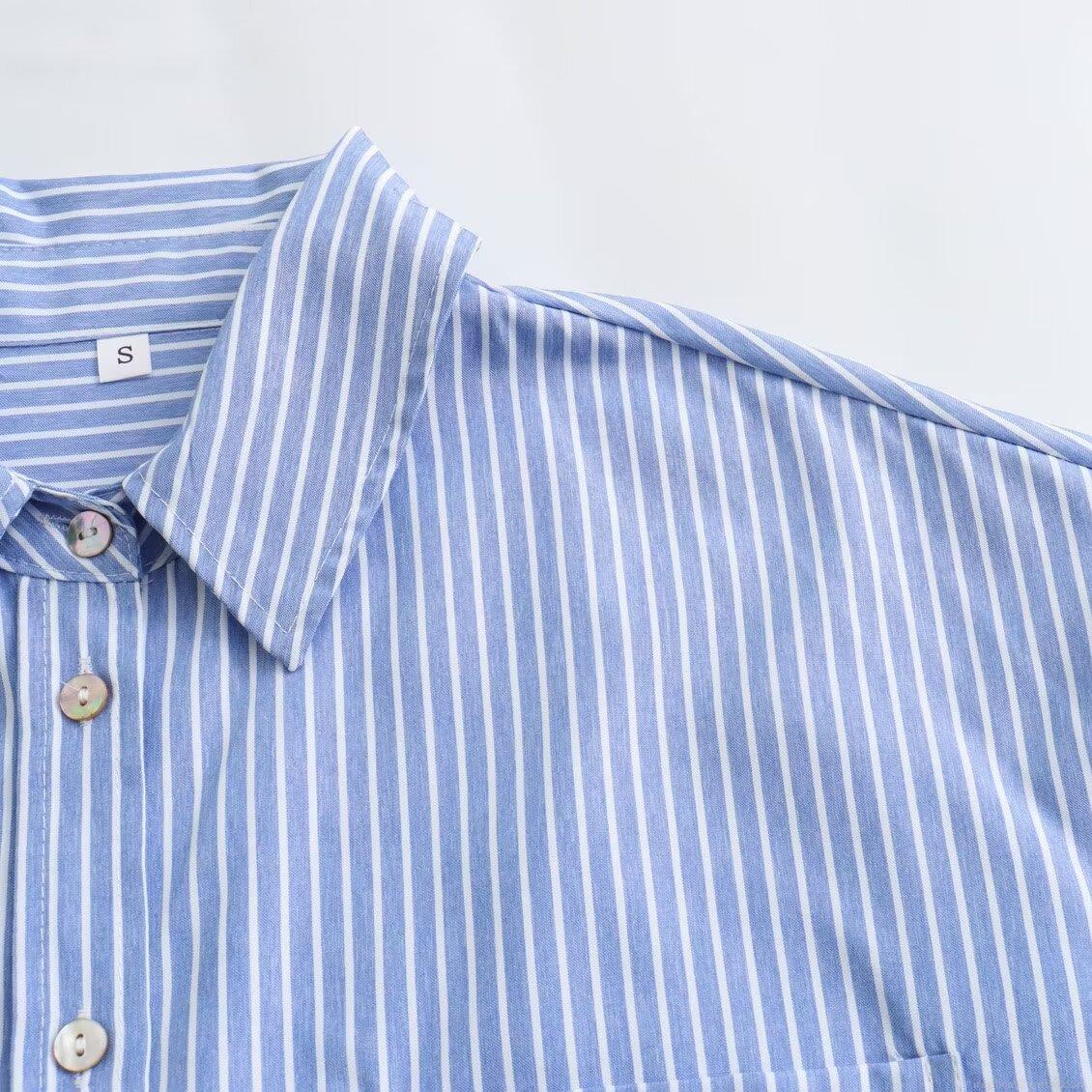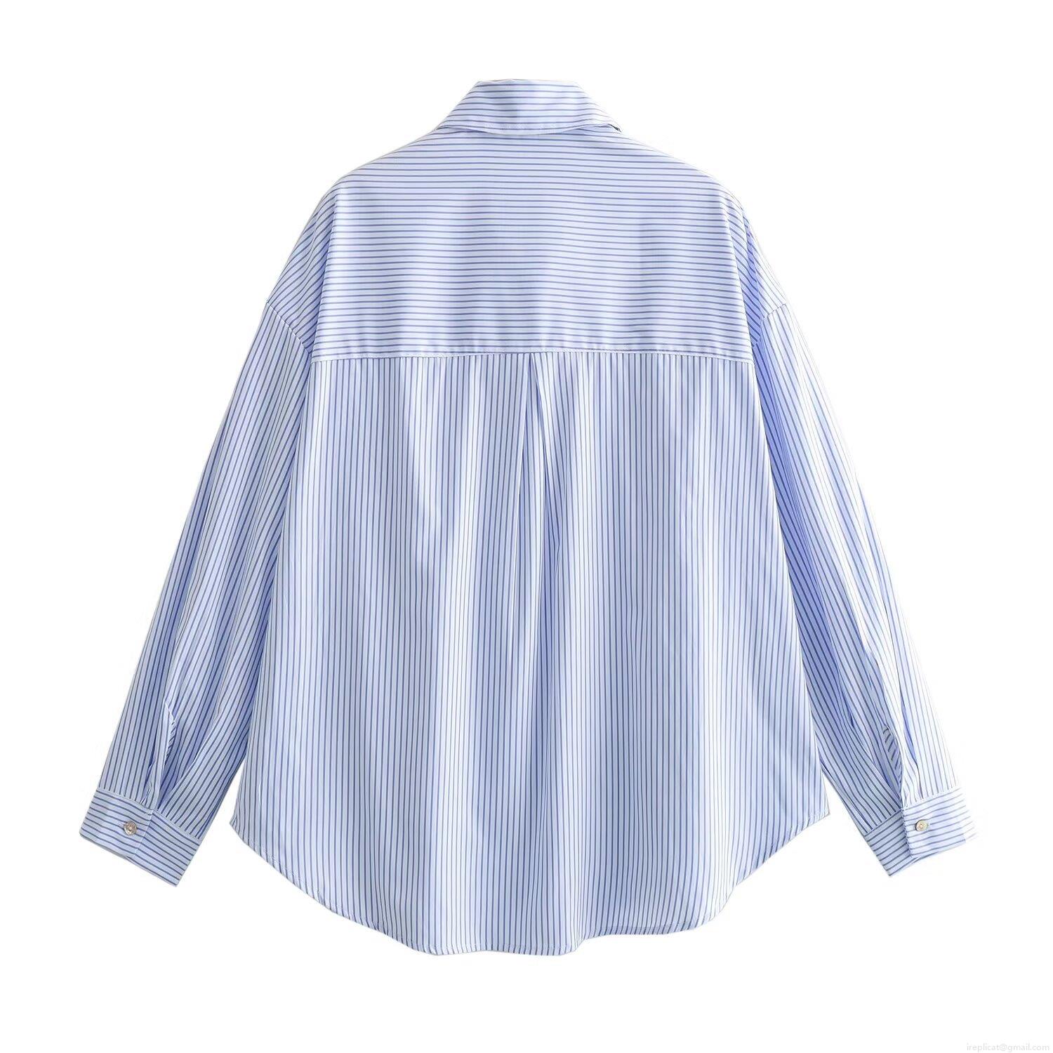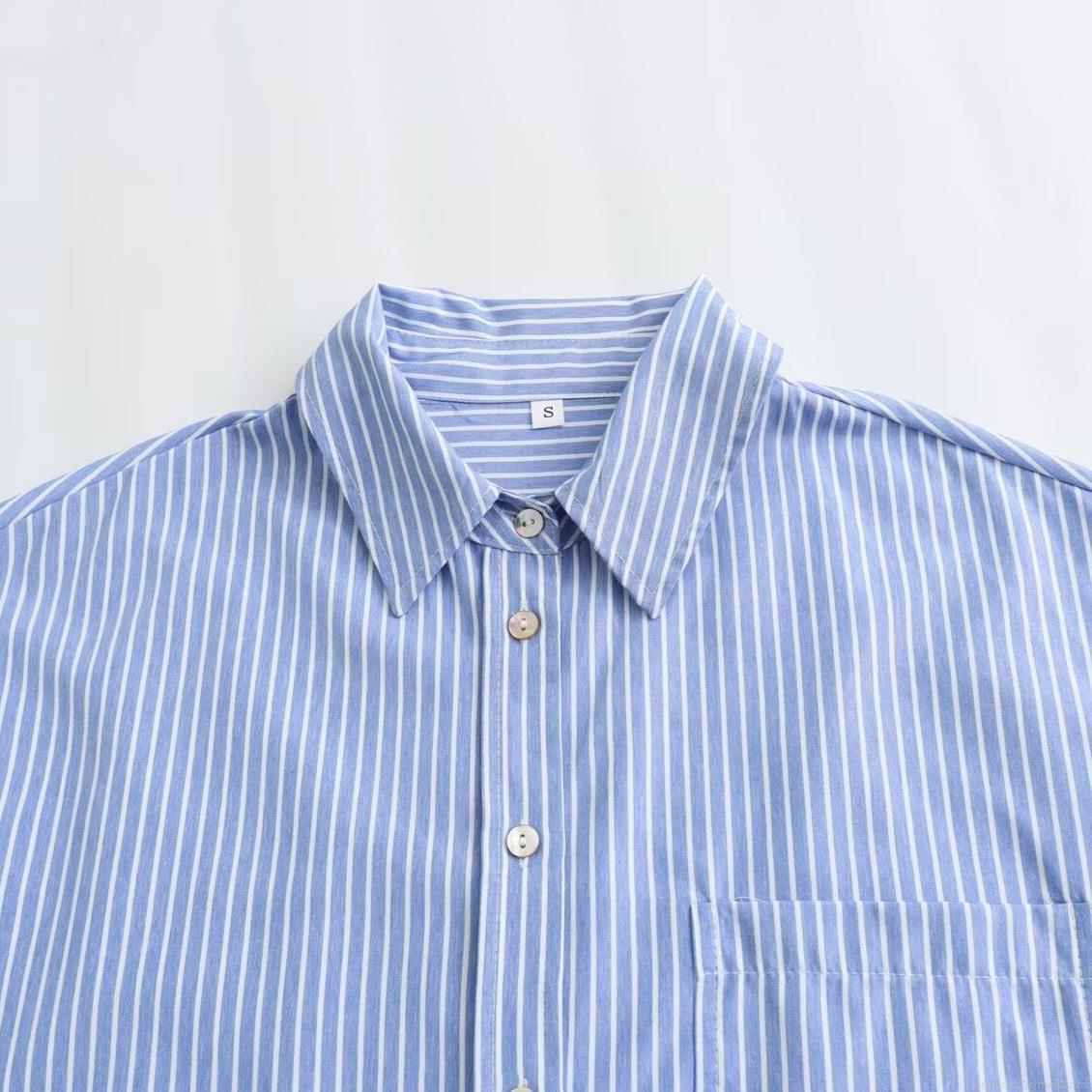 • Women's Casual Loose Striped Long Sleeve Shirt Polyester Linen Blend Lapel Button Down Blouse With Pocket For Daily Spring Summer Office