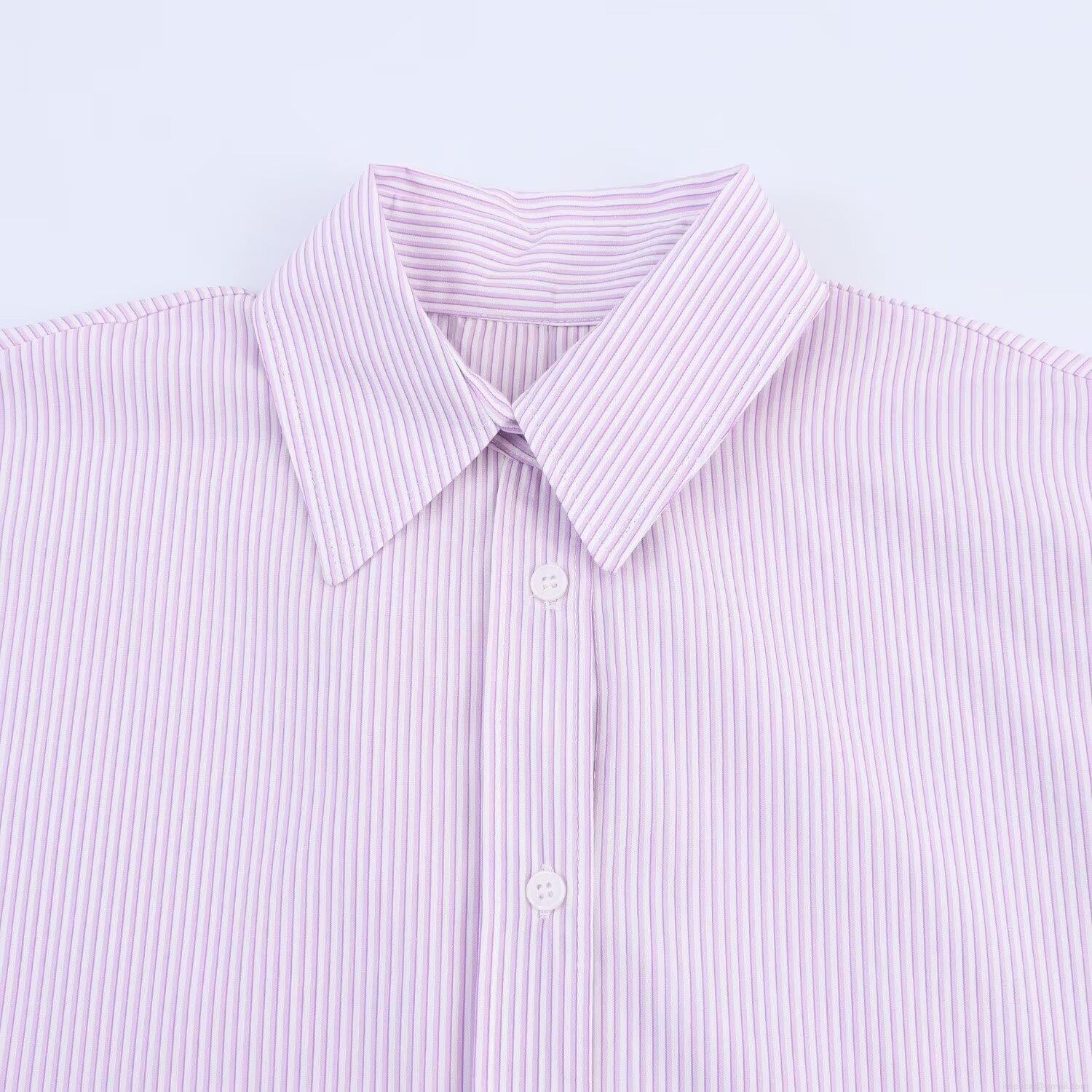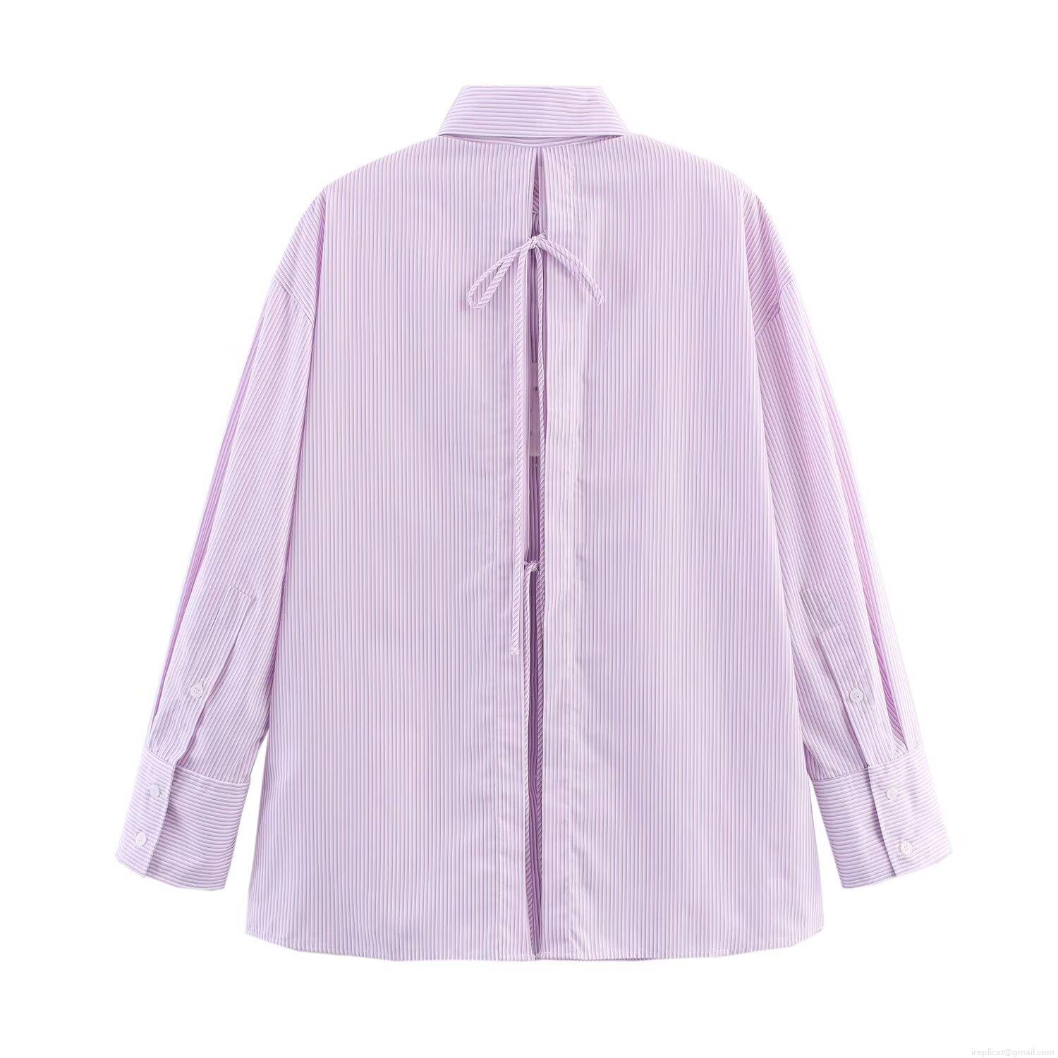• Women's Casual Loose Striped Poplin Shirt Long Sleeve Turn-down Collar Back Split Bow Tie-up Blouse Top For Daily Commute