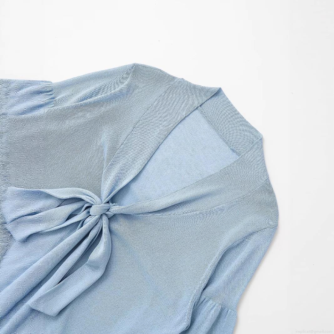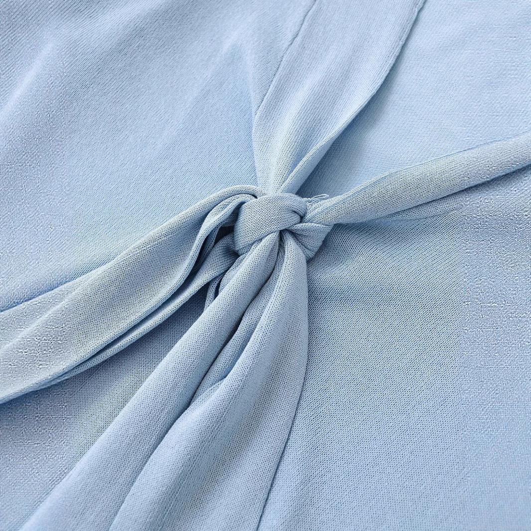 • Women's Casual Mercerized Cotton Knit Blouse With V Neck Bow Tie Up Loose Fit Long Sleeve Top For Summer Fashion Streetwear
