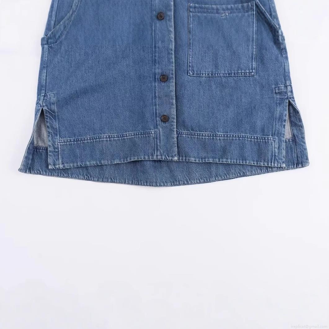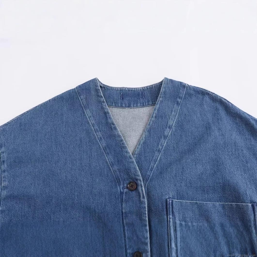 • Women's Casual Oversized Blue Denim Shirt Long Sleeve Drop Shoulder Single Breasted Blouse With Pocket Side Split Cotton Denim Jacket Top
